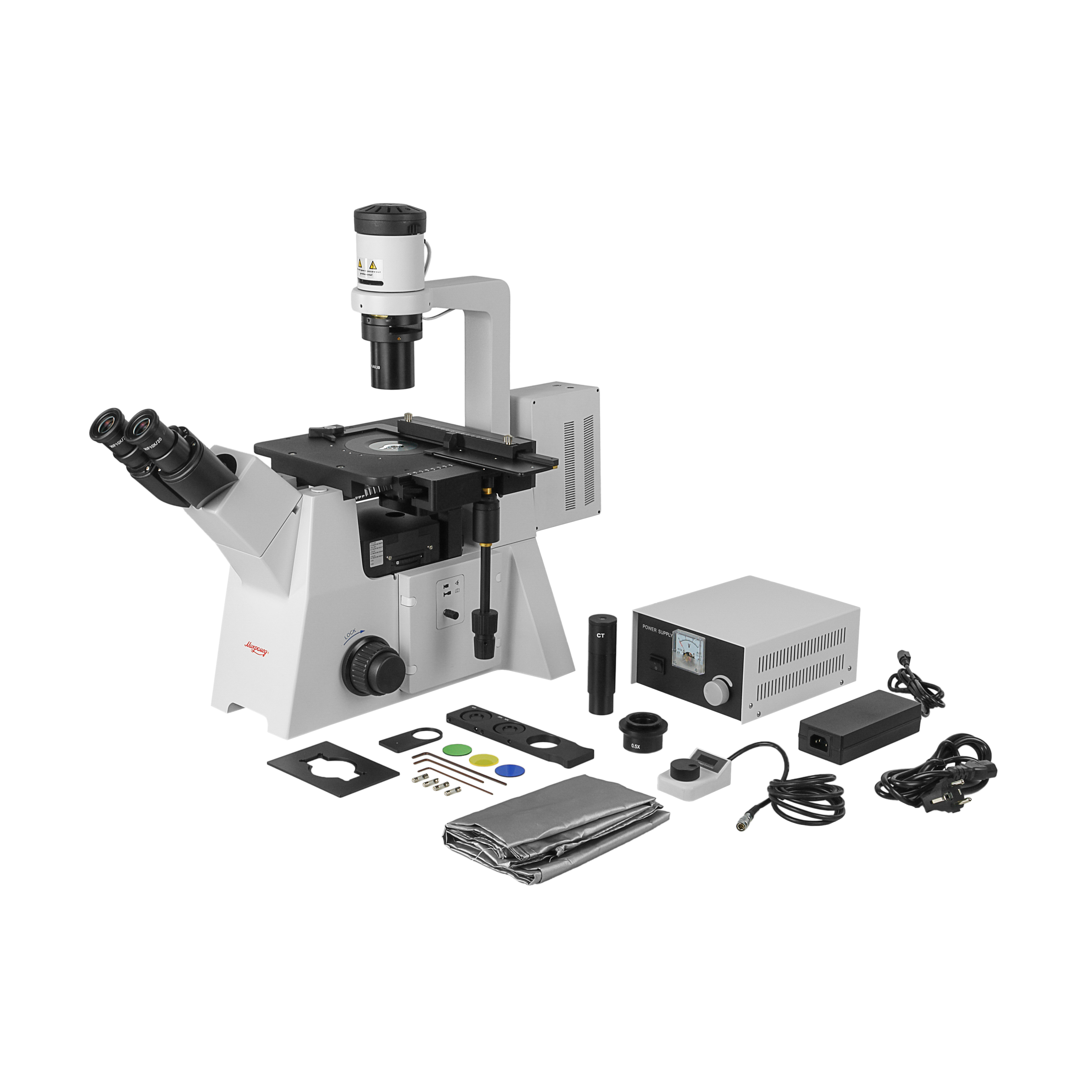 - Инвертированный штатив с предметным столиком, осветителем проходящего света, механизмом фокусировки и оптическим каналом визуализации