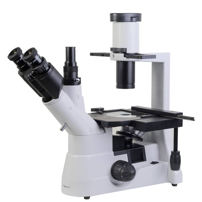 Инвертированное строение микроскопа Микромед И позволяет проводить исследования крупных прозрачных образцов и жидкостей в лабораторной посуде высотой до 70 мм. При необходимости можно установить посуду с высотой до 150 мм, что достигается удалением конденсора осветительной системы с некоторым ухудшением качества освещения.