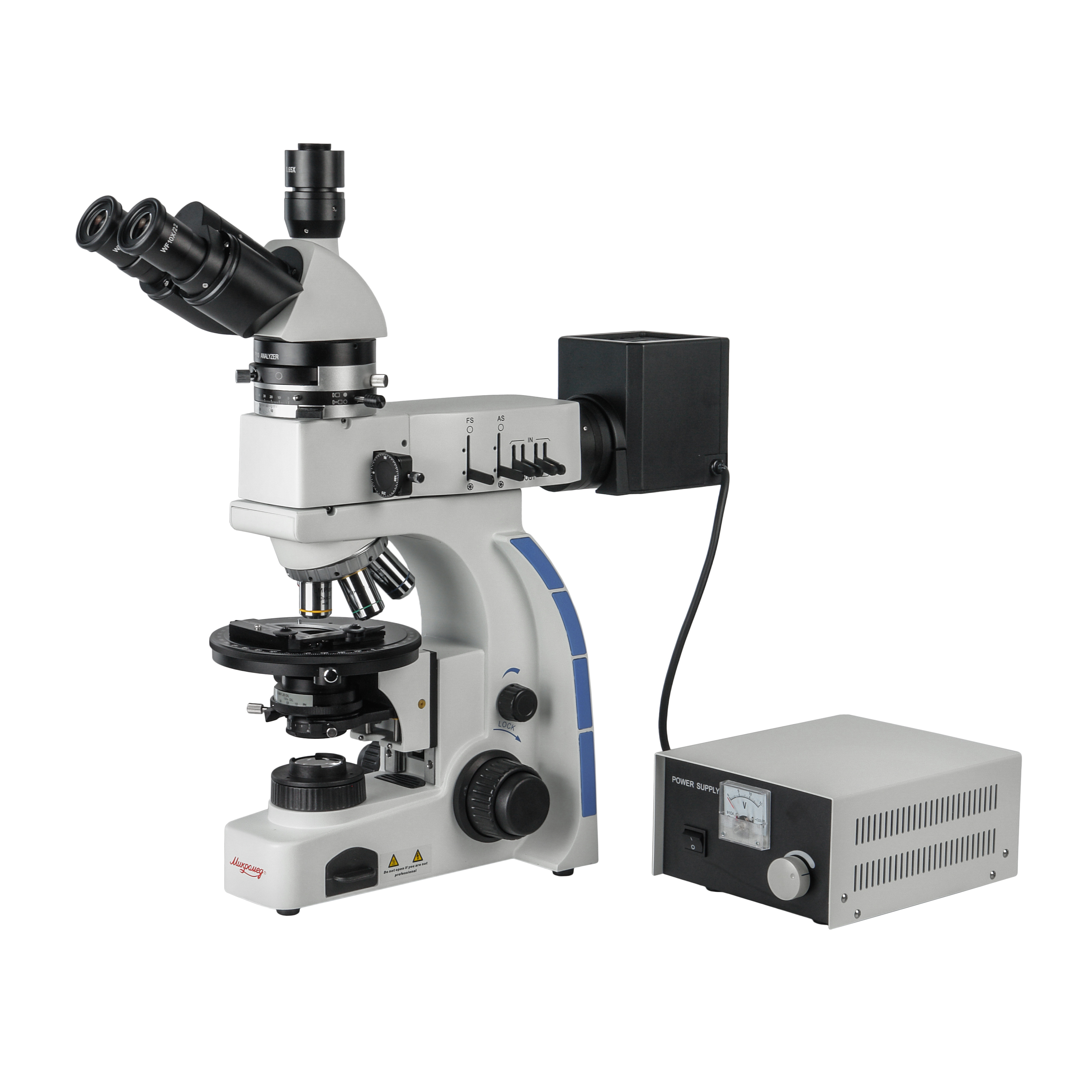 Для работы с поляризованном светом в системе используется выдвижной поляризатор с вращаемой на 360⁰ плоскостью поляризации, при работе с обычным светом поляризатор выдвигается из хода лучей. Анализатор установлен в промежуточном тубусе, имеет поворотную на 180⁰ конструкцию и при работе в обычном свете выводится из хода лучей.