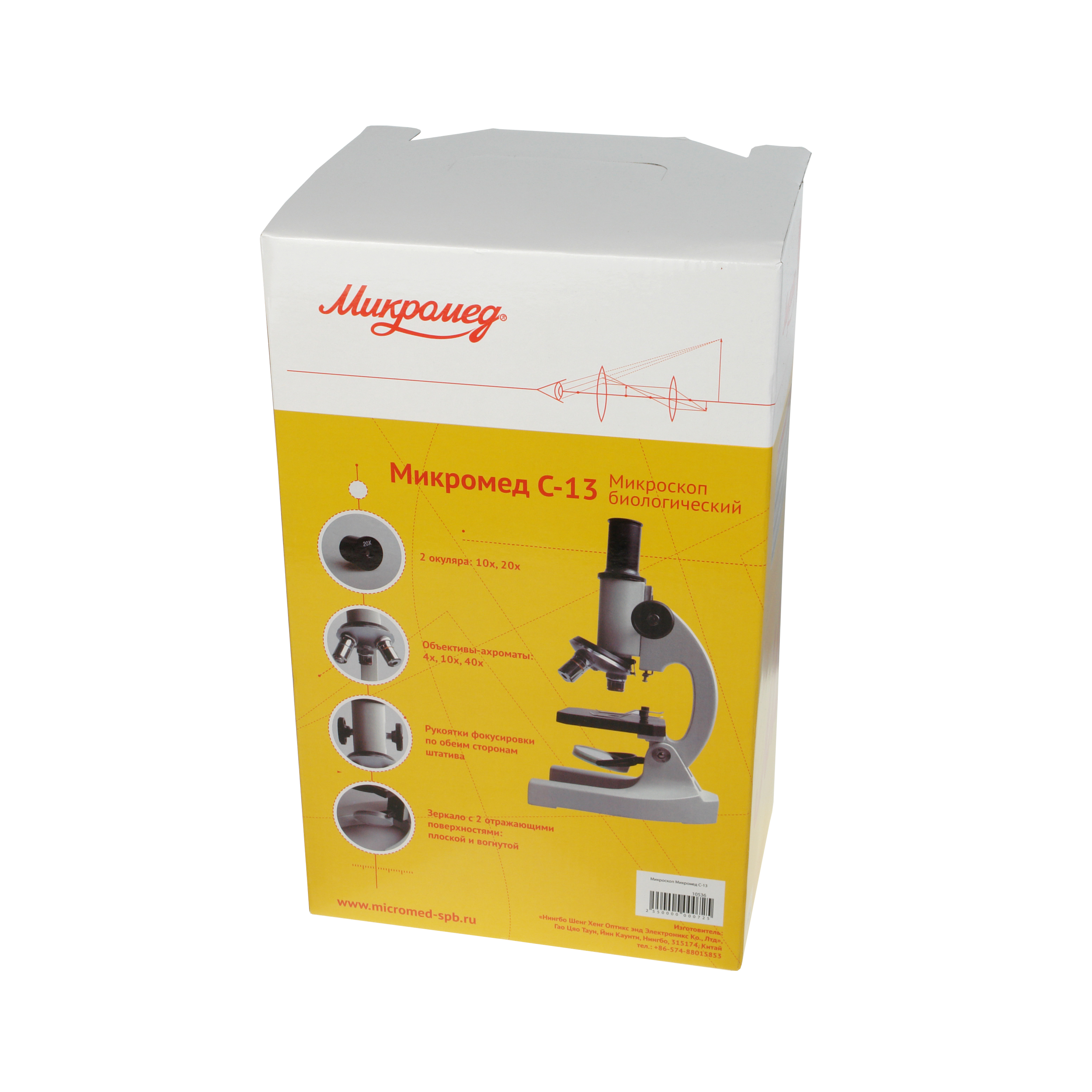 Оптика из стекла, простота конструкции, удобство в работе и низкая цена делают этот микроскоп незаменимым инструментом для обучения в учебных заведениях. Источник света — зеркало. Это позволяет использовать микроскоп без подключения к электричеству. Упаковка микроскопа обеспечивает сохранность микроскопа, объективов и окуляров при многочисленных передвижениях и при работе вне лабораторных условий.