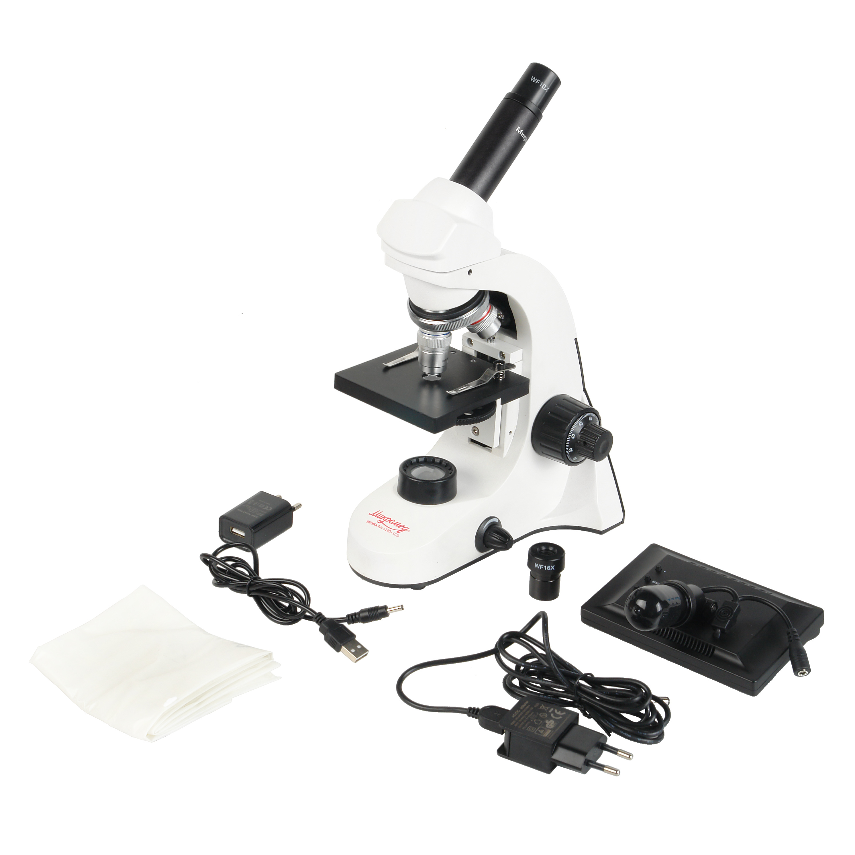 - Два в одном – оптический и цифровой микроскоп с собственным монитором.