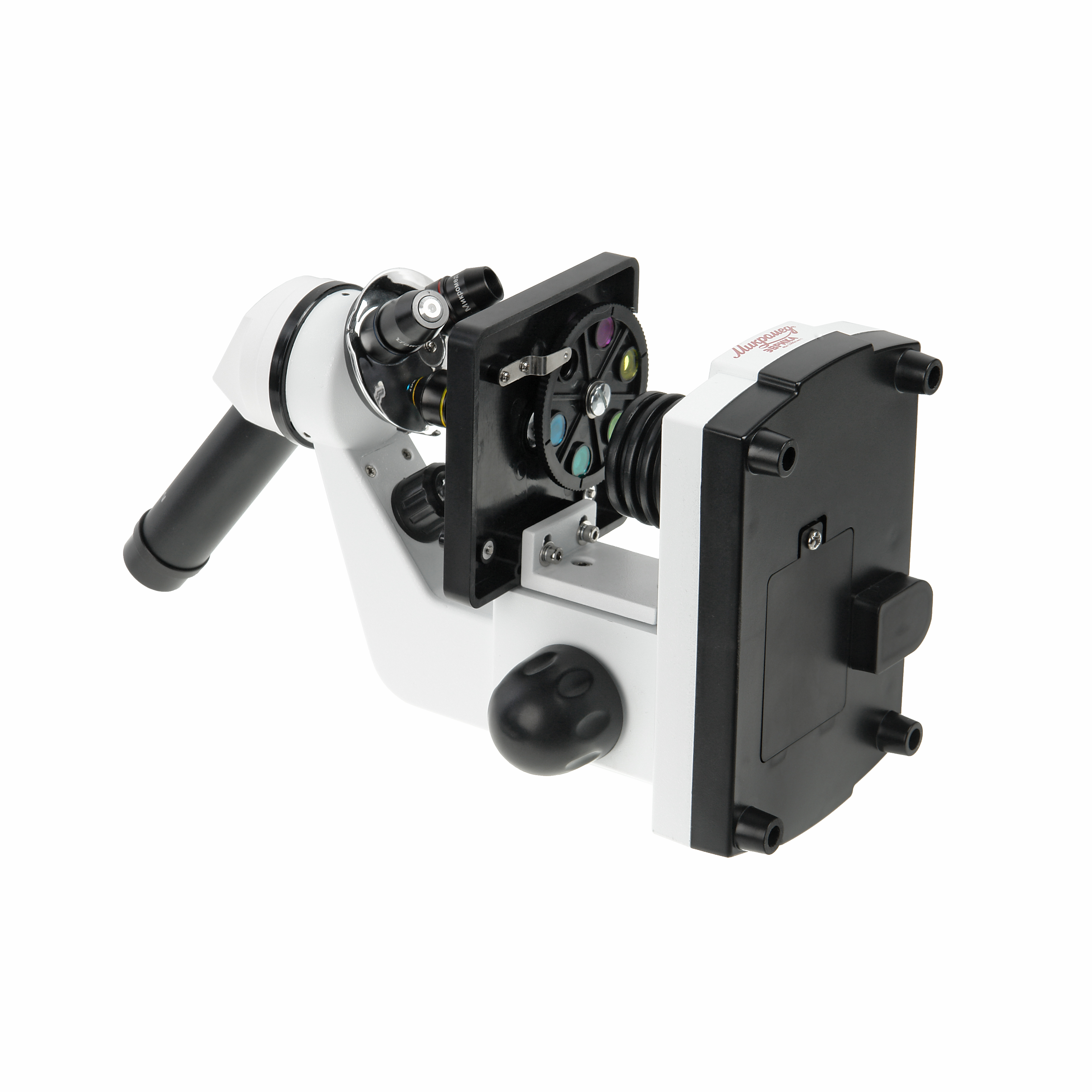 - Предметный столик 90 мм х 90мм со шкалой, клеммами, диском с диафрагмами и светофильтрами (установлен) – 1 шт