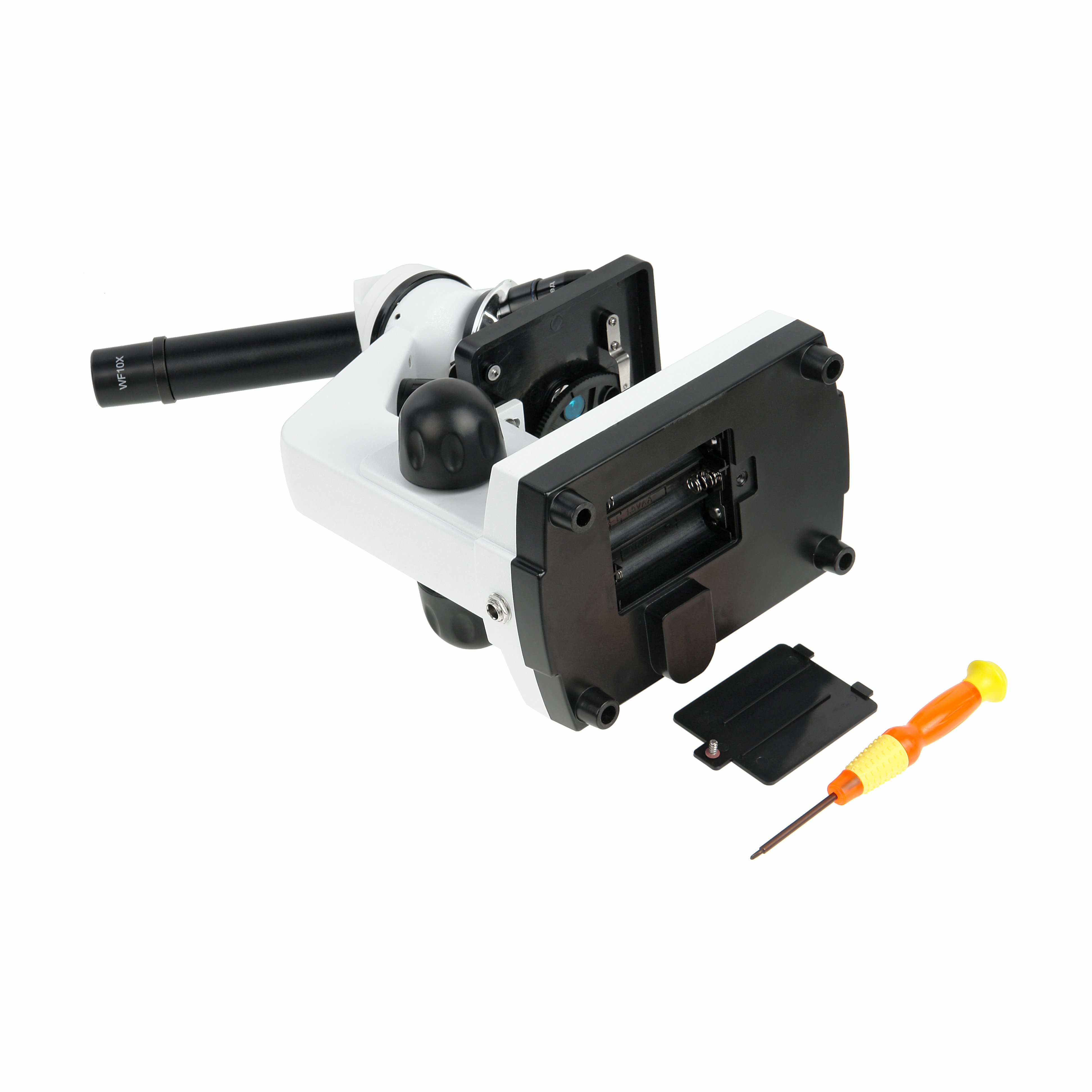 Оба осветителя снабжены коллекторными линзами и имеют бесступенчатую регулировку яркости. Осветитель отраженного света эффективен только с объективами малых увеличений, так как при больших увеличениях объективов рабочее расстояние очень маленькое и падающий свет может перекрываться оправой объектива. Питание осветителей может производиться от 3-х щелочных батареек тип АА или от приобретаемого отдельно сетевого адаптера.