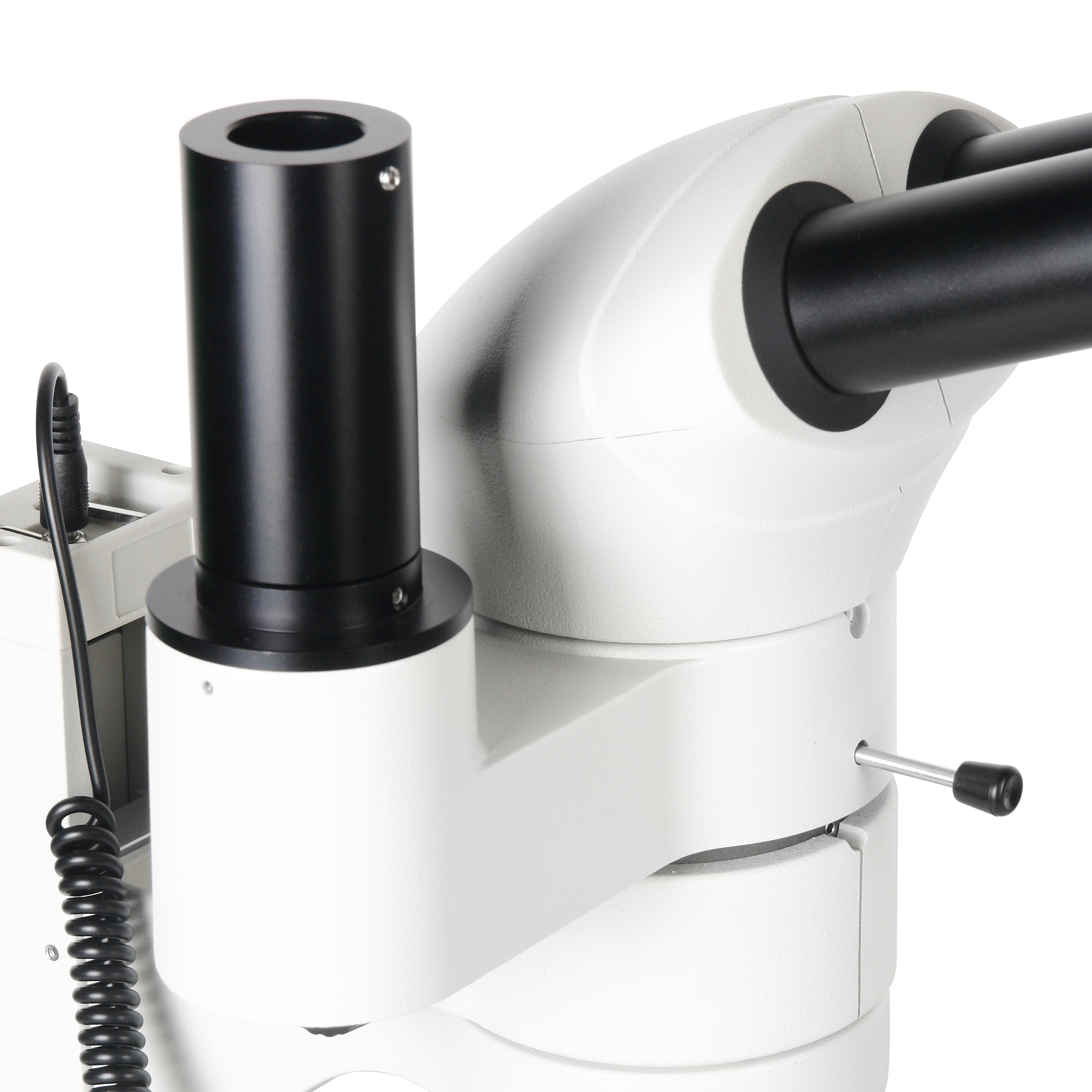 Визуальная насадка микроскопа имеет дополнительный тубус для установки окулярной камеры - канал визуализации, что позволяет передавать файлы на внешнее устройство для их записи и просмотра на мониторе в режиме реального времени. Посадочный диаметр тубуса для установки камеры (видеоокуляра) 23,2 мм. Видеоокуляр в комплект микроскопа не входит и приобретается отдельно. Выбрать и приобрести видеоокуляр можно как в нашем интернет-магазине, так и у наших дилеров.