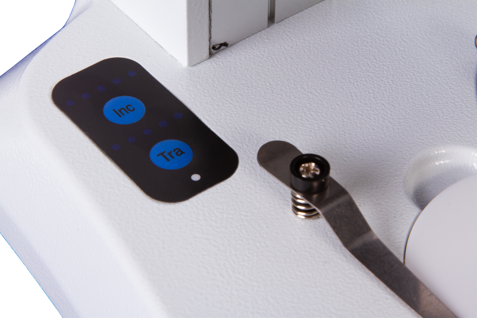 Микроскоп снабжен бинокулярной насадкой, причем оба окуляра обеспечивают хороший обзор и имеют резиновые наглазники. Объектив поворотной конструкции позволяет менять увеличение прямо во время наблюдений. Предметный столик неподвижный, его поверхность можно выбирать в зависимости от исследований: доступны черно-белая пластина и пластина из матового стекла. Для фиксирования микропрепаратов используются металлические зажимы.