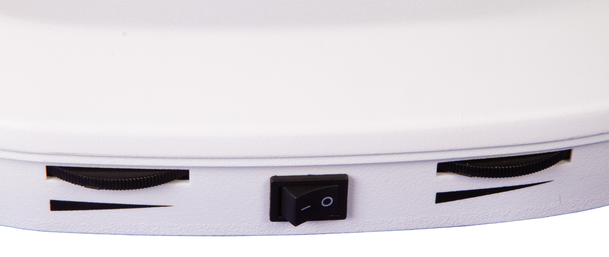 Предметный столик расположен в основании микроскопа, он неподвижный. Рабочее расстояние составляет 105 мм. Поверхность столика можно менять, доступны матовое стекло и непрозрачная черно-белая пластина из пластика. Подсветка расположена сверху и снизу, яркость регулируется. Для работы подсветки требуется подключение к сети переменного тока, также ее можно запитать от USB-порта внешнего устройства.