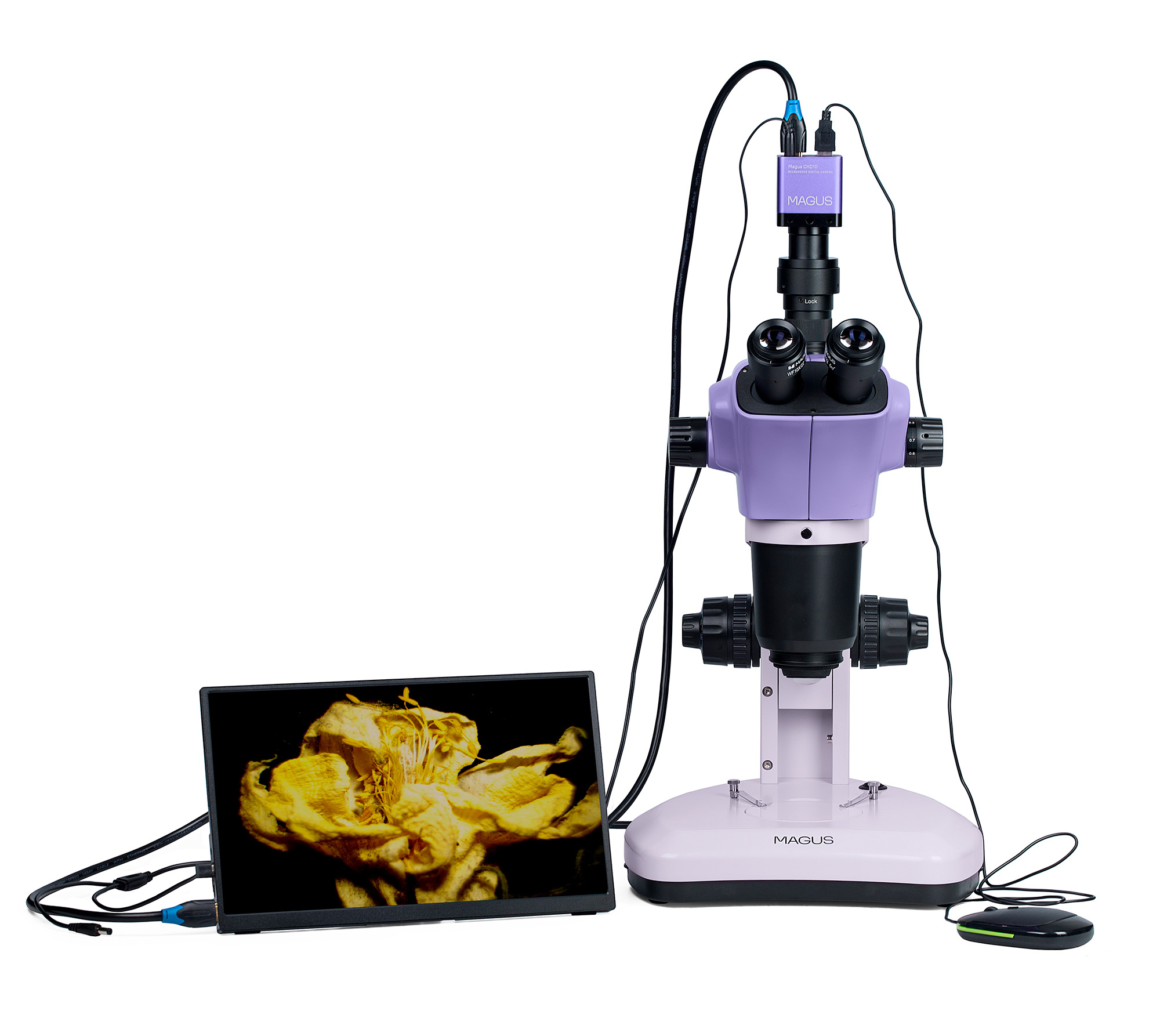 Он помещается в установленную камеру микроскопа и выводит изображение в первое время. Поддерживаются HDMI-камеры MAGUS, работающие в разрешениях Full HD.