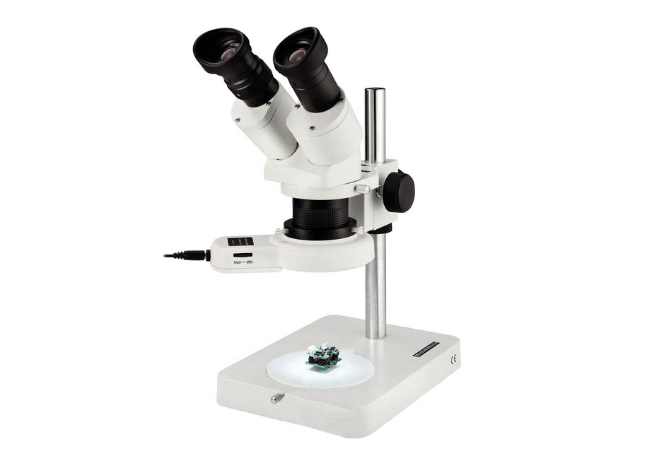 Eschenbach 10–20x с кольцом отраженного света – это стереоскопический бинокулярный микроскоп со светодиодной подсветкой. Такой оптический инструмент прекрасно подойдет для лаборатории или мастерской, где требуется изучение трехмерных объектов под микроскопом. Модель дает увеличения 10 и 20 крат – на них можно рассматривать органические и неорганические образцы, горные породы, мелкие механизмы и многое другое. Микроскоп крепится к металлическому штативу с помощью винта, может опускаться и подниматься.