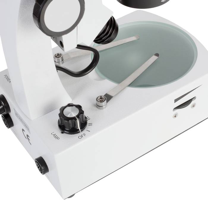 - Микроскоп имеет два фиксированных увеличения 20х и 40х.