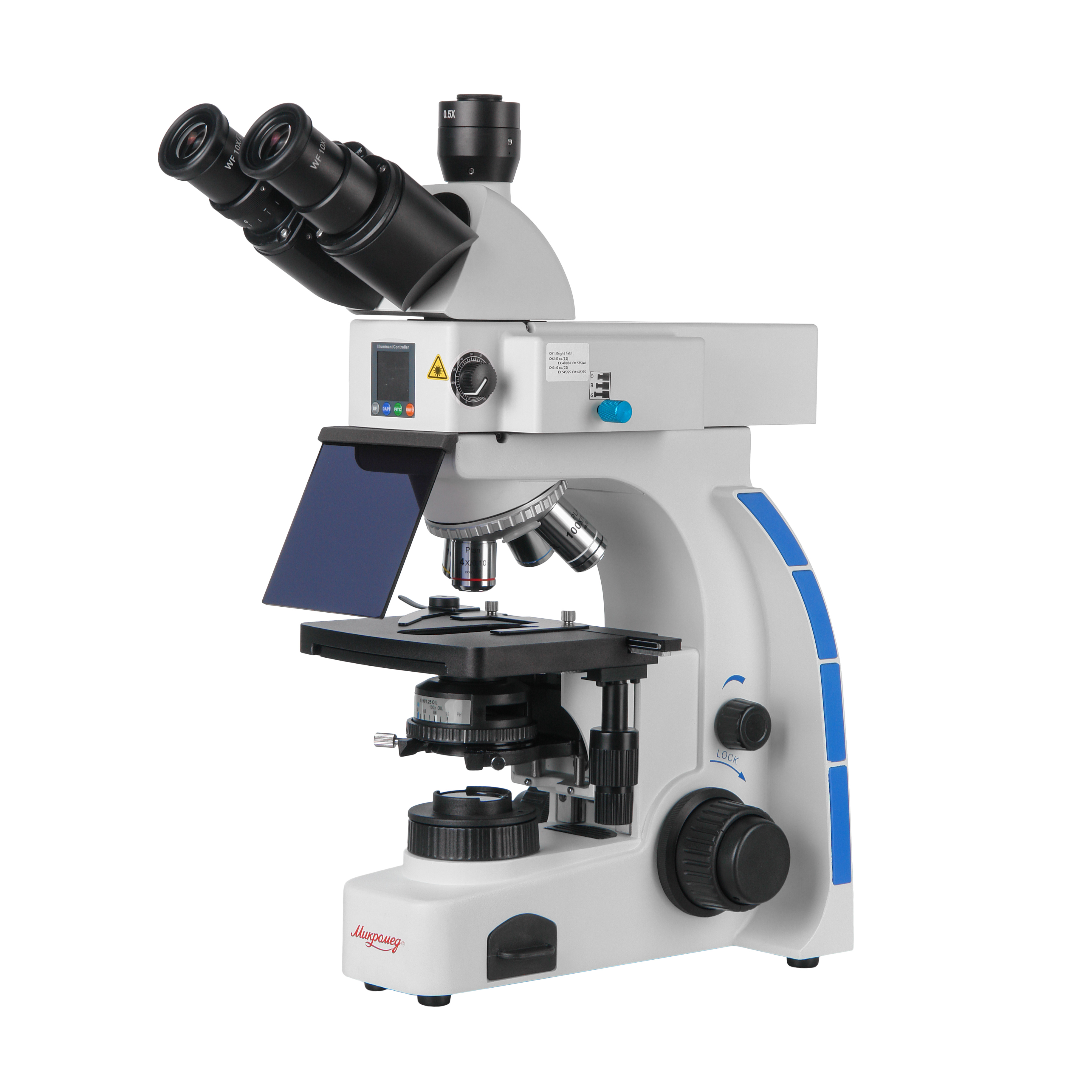 Микроскоп построен по оптической схеме «бесконечность» и включает оптическую головку с окулярными тубусами и каналом визуализации, объективы, коллектор и конденсор осветительного устройства. Также в оптическую систему входит светодиодный модуль осветителя отраженного света с блоками люминесцентных фильтров.
