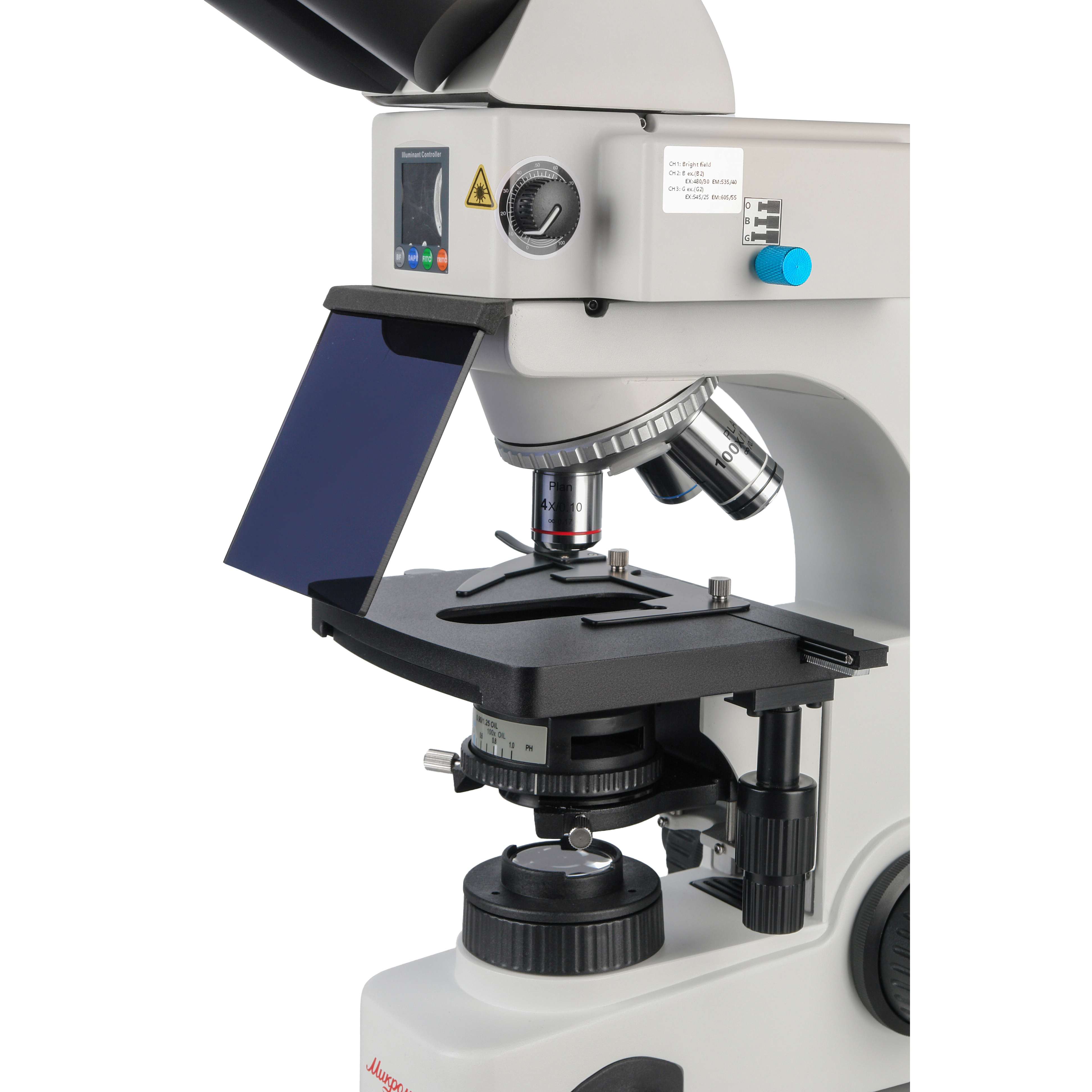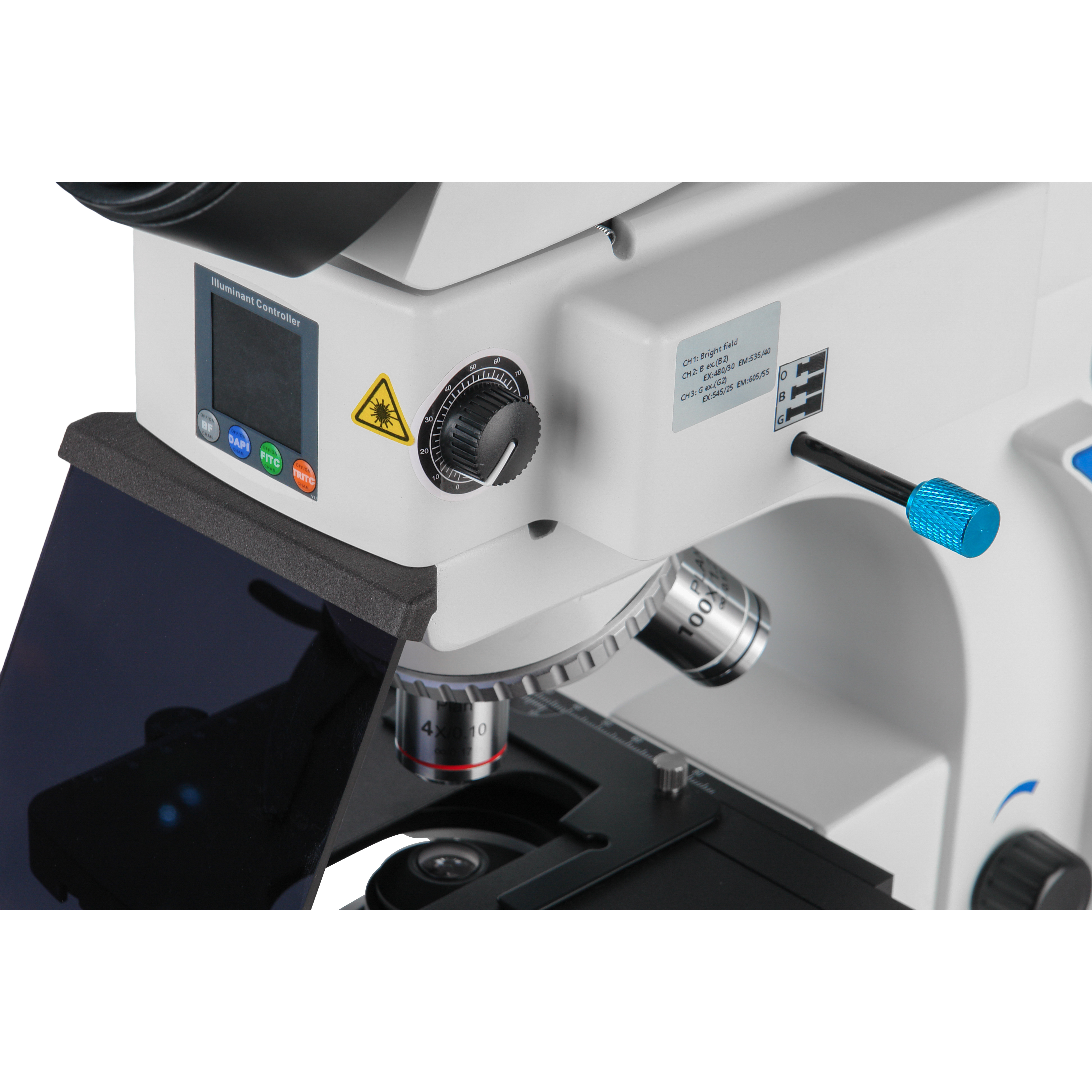 Осветительный модуль микроскопа позволяет проводить исследования в свете видимой люминесценции в 2-х спектральных областях с помощью схемы прямого освещения предмета через объектив. Модуль имеет два люминесцентных блока, каждый из которых состоит из дихроичного зеркала и светофильтров. Эти элементы с высокой точностью рассчитаны на определенный спектральный диапазон, что позволяет проводить исследования в необходимой области спектра.