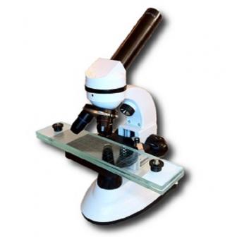 Конструкция Биомед 2К такова, что его можно использовать и как обычный биологический микроскоп. Он имеет монокулярную насадку, револьверное устройство на 3 объектива, неподвижный предметный столик и встроенную светодиодную подсветку. Вы можете проводить исследования по методу светлого поля (отраженный и проходящий свет). Биомед 2К имеет ахроматические объективы и дает кратность от 40х до 400х. Подсветка работает от батареек (в комплект поставки не входят), максимальное время работы – около 500 часов.
