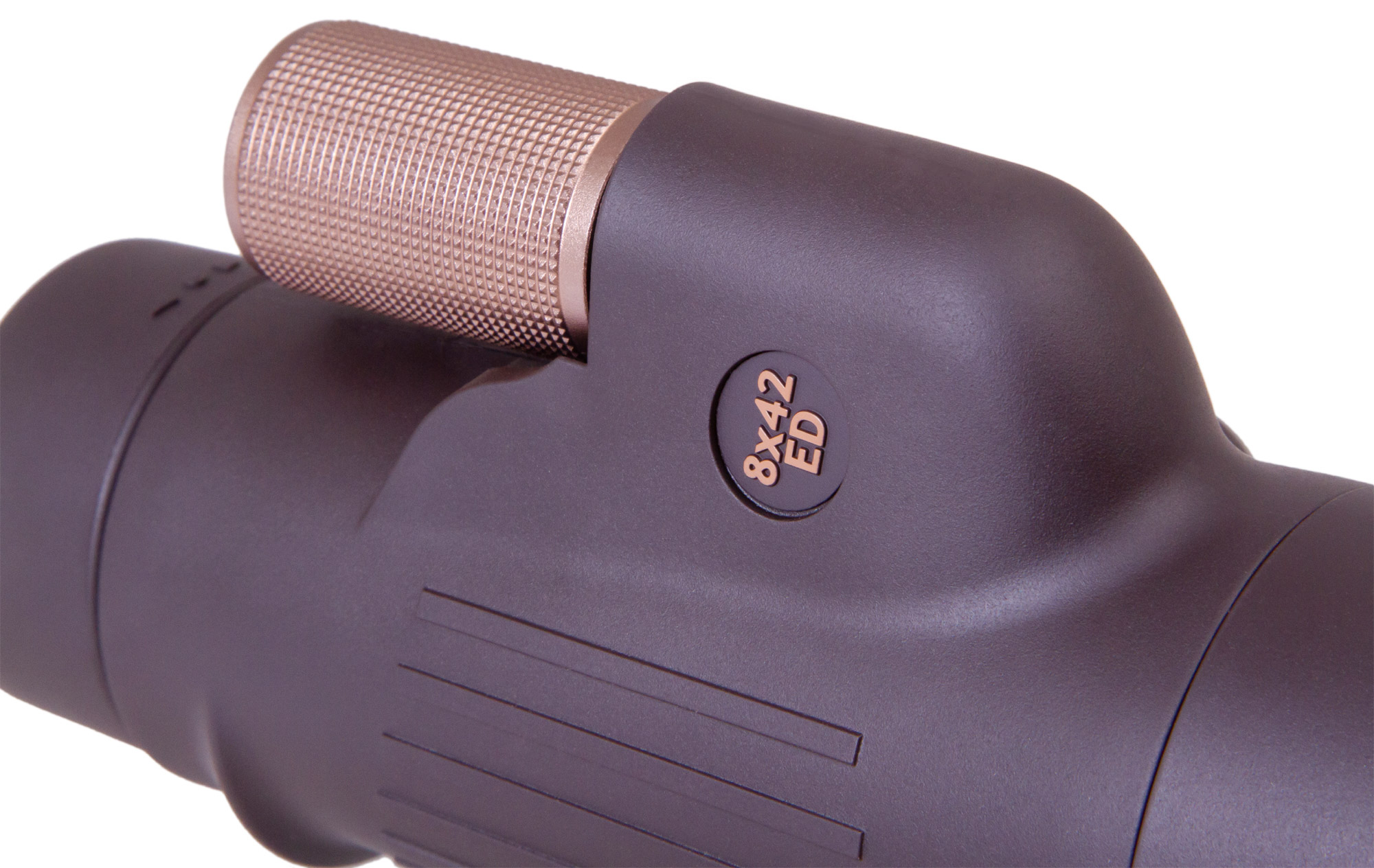 Низкодисперсионная оптика – это значительное снижение хроматизма, избавление от цветных паразитных ореолов, улучшение контрастности и цветопередачи. Полное многослойное просветление повышает яркость передаваемой картинки, позволяя вести наблюдения даже при слабой освещенности. Минимальная дистанция фокусировки в 2 метра дает возможность изучать близко расположенные объекты и использовать монокуляр в помещении. А широкое поле зрения пригодится при слежении за быстро движущимися объектами. Также у монокуляра большой вынос зрачка, удобный для наблюдений в очках.