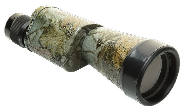 На линзы прибора нанесено многослойное просветляющее покрытие, а объектив диаметром 50 мм собирает достаточно света, чтобы картинка получалась ясной и четкой даже при недостатке освещения – в пасмурную погоду или в легких сумерках. Минимальное расстояние фокусировки составляет 11 метров. Монокуляр защищен от проникновения влаги и пыли и стабильно работает даже в морозы до −40 °С. Виниловое покрытие предохраняет корпус от повреждений, а его камуфляжная расцветка помогает соблюдать маскировку при использовании в смешанном лесу.