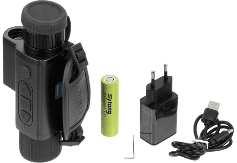 Минимум 5 часов активных наблюдений. Тепловизор Sytong XS03-35 LRF питается от 1 съёмного аккумулятора 18650: при полном заряде в тёплую погоду обеспечивает минимум 5 часов автономной работы. Продлить рабочий процесс можно за счёт подключения Power Bank (USB-C), а сэкономить «штатный» заряд при помощи «спящего» режима и запрограммированного выключения питания. Крышка батарейного отсека крепится к корпусу тонким, прочным шнурком, предотвращая потерю.
