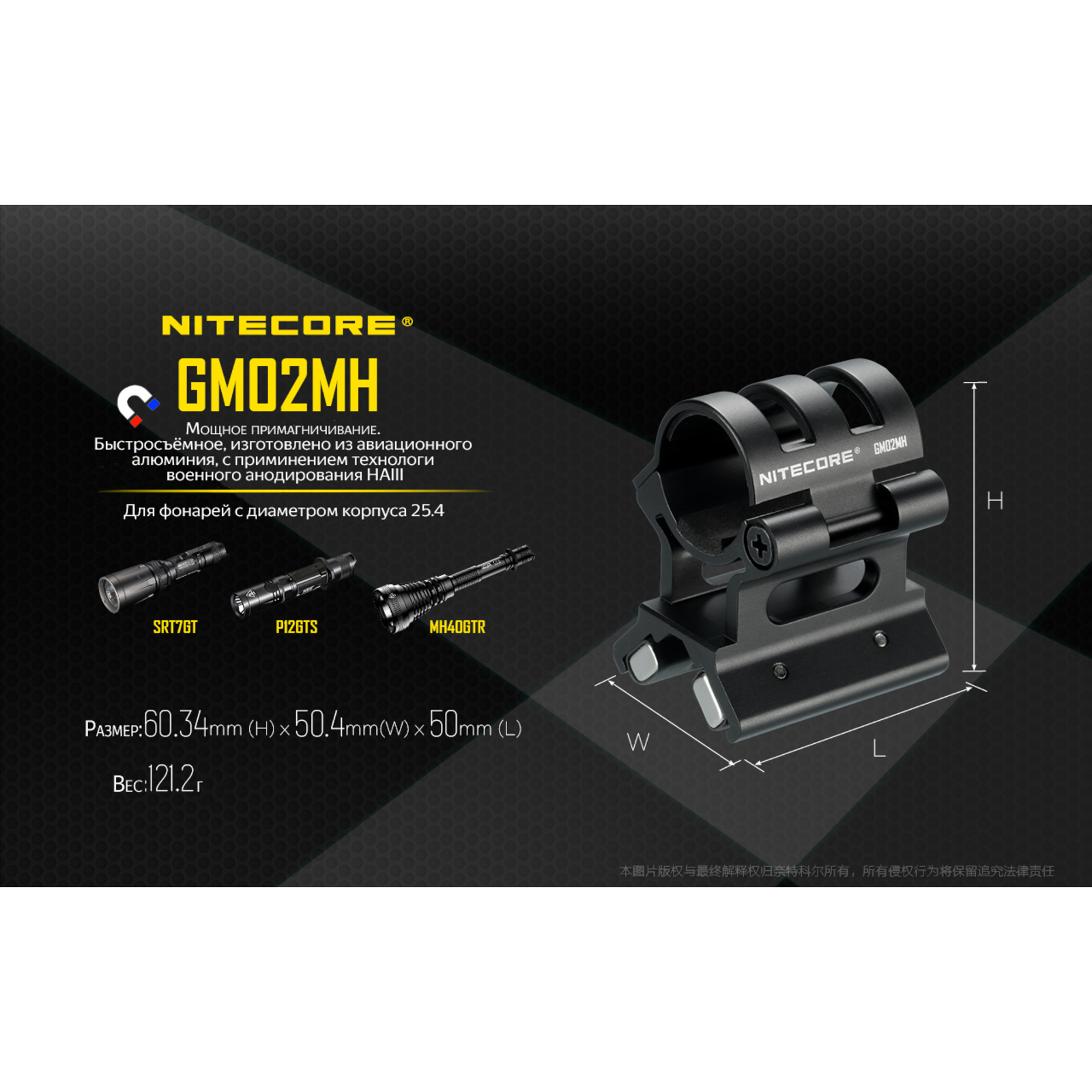 Также Nitecore GM02MH классифицируется как “быстросъемное”, так как магнит не только крепко и надежно фиксирует крепление, но и также быстро позволяет пользователю его открепить.