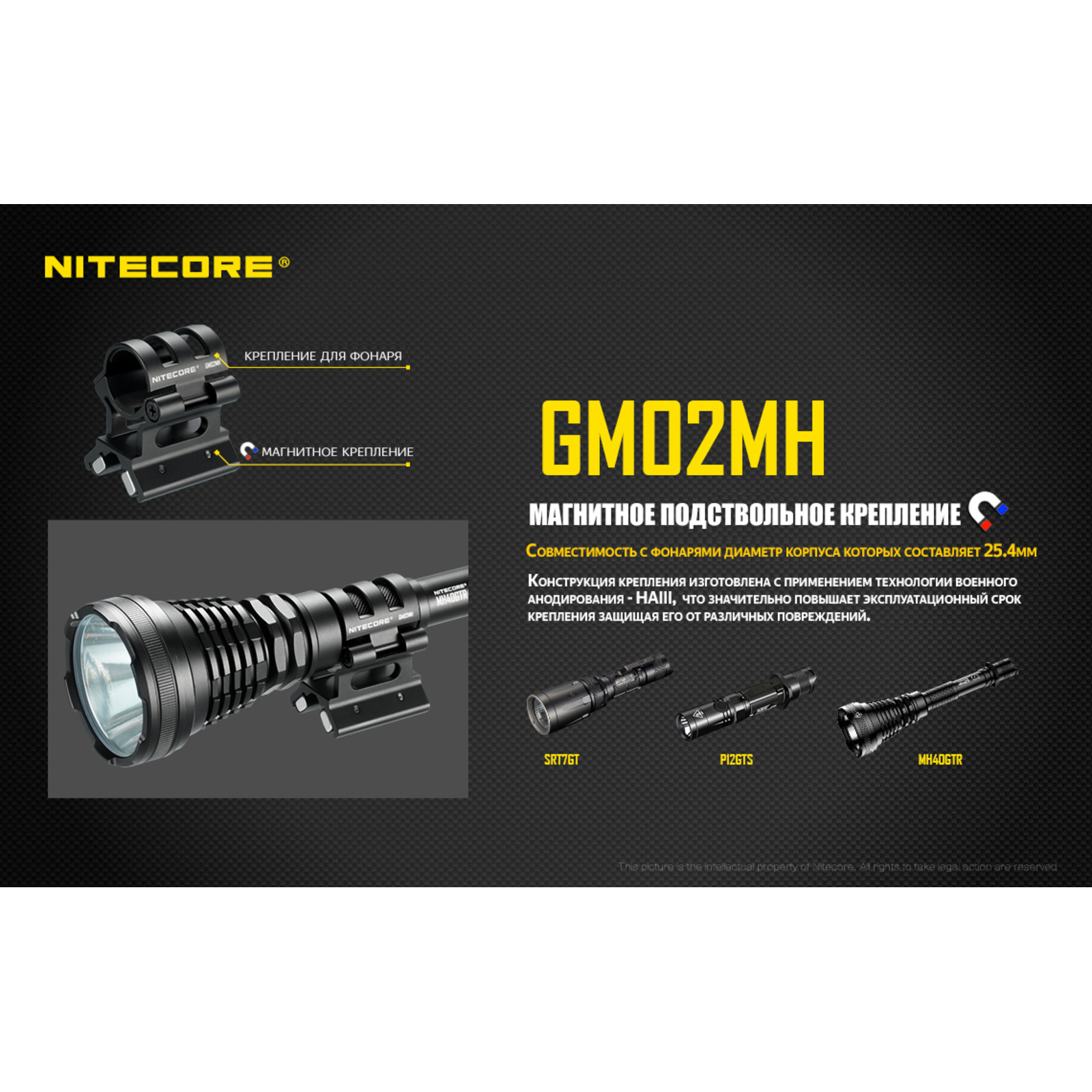 Nitecore GM02MH выполнено в самой оптимальной форме, что позволит надежно фиксироваться на любом нарезном карабине с диаметром контура 17 мм, так и для гладкоствольных ружей 12-го калибра.
