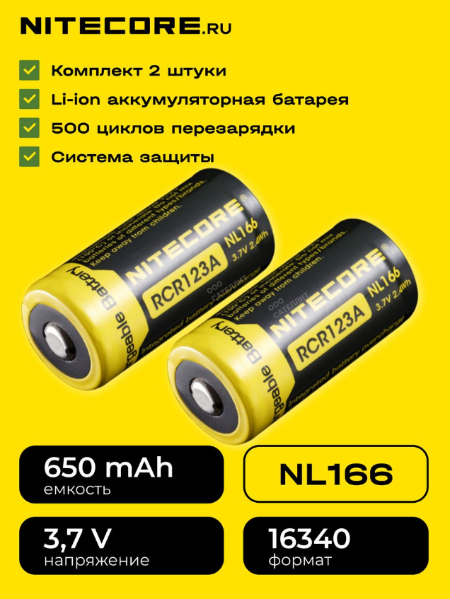 RCR123A - литий-ионная аккумуляторная батарея