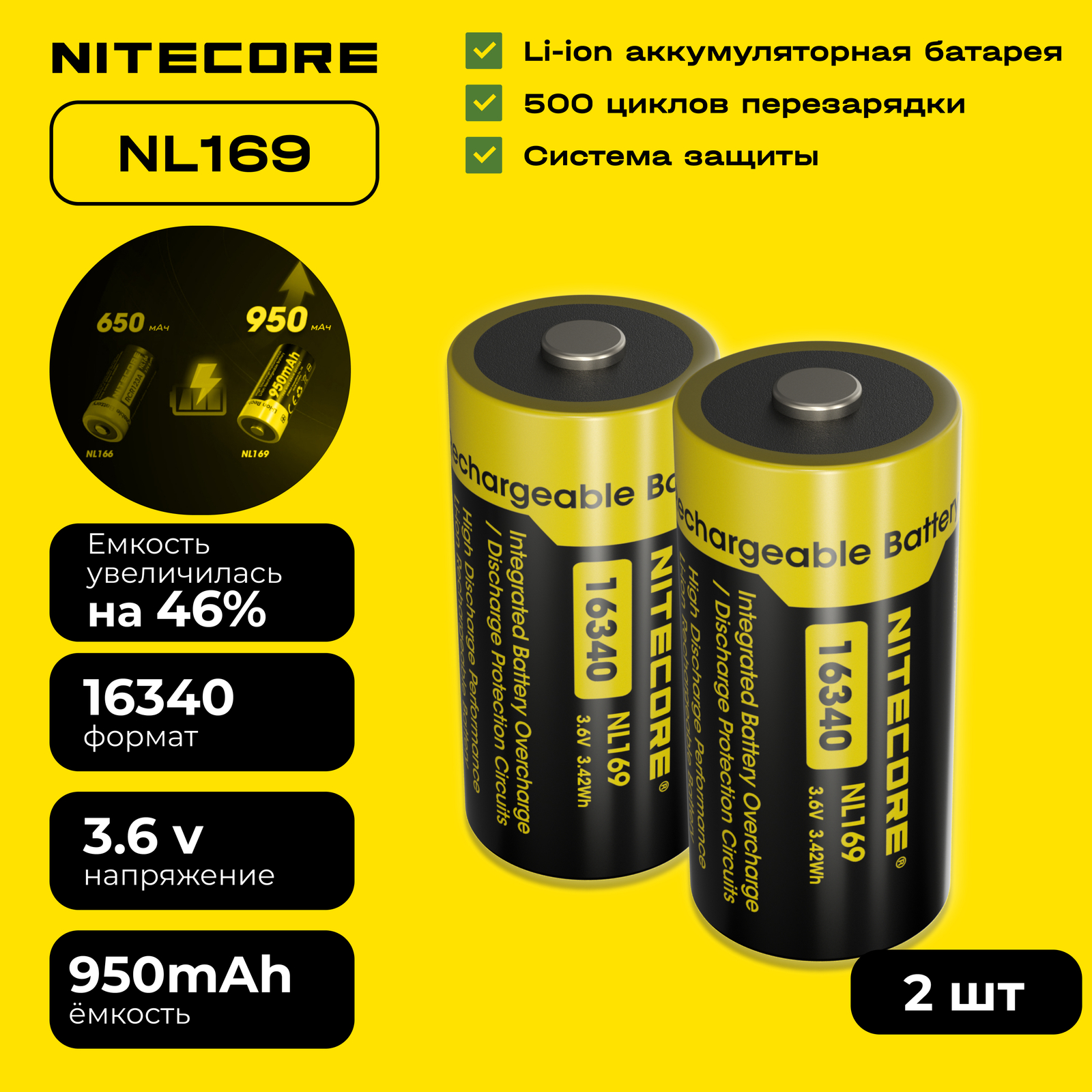 - Более 500 циклов зарядки-разрядки
