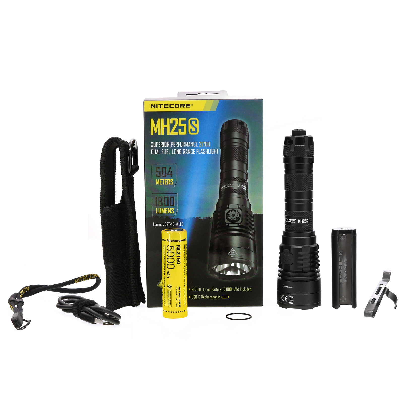 MH25S,Литий-ионная аккумуляторная батарея NITECORE 21700 ((NL2150 5 000 мАч), кабель USB-C для зарядки, клипс, шнур, запасное уплотнительное кольцо, магазин для батарей 18650/CR123, тактический чехол-кобура NTH10