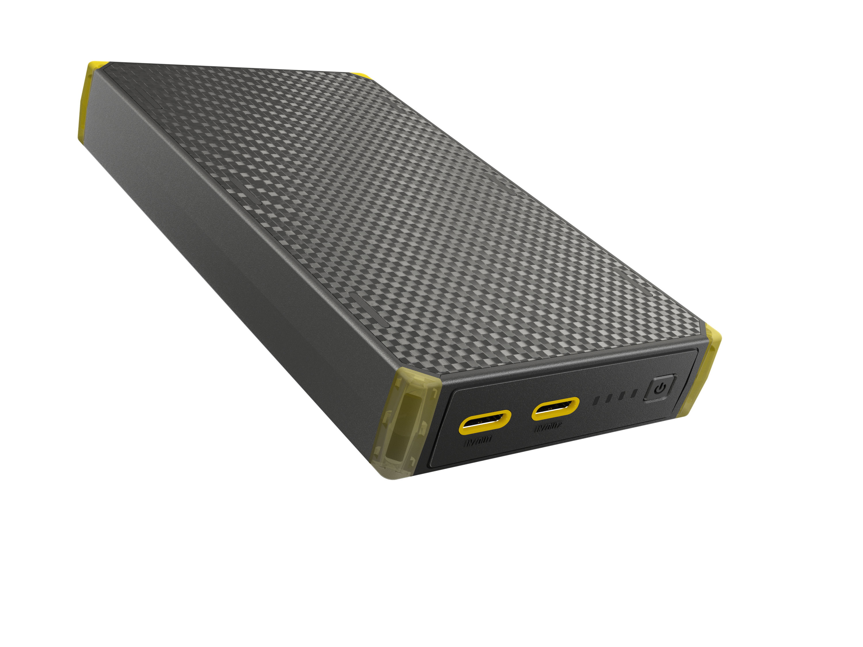 NB20000 Gen3 изготовлен из плетеного углеродного волокна, плотно уложенного и сформованного под давлением, что придает ему стильный вид. Рама изготовлена из полимера, усиленного углеродным волокном, что делает ее легкой, прочной и долговечной. Четыре угловые подушки обеспечивают отличную ударопрочность, а также удобный захват и гарантируют, что power bank не порвет рюкзак или карманы при длительной переноске. Двусторонние листы углеродного волокна скреплены 12 машинными ключами и образуют композитную структуру из углеродного волокна, предотвращающую скручивание, что повышает ударопрочность в горизонтальном и вертикальном направлениях.