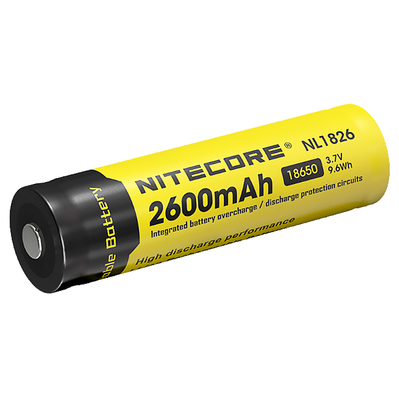 Аккумулятор NL1826 ёмкостью 2600 mAh обладает распространенным типоразмером 18650 и может быть использован для множества фонарей и других устройств. В относительно небольшом корпусе NL1826 присутствует защита от короткого замыкания, плата контроля температуры и микропористый барьер, защищающий от ударов.