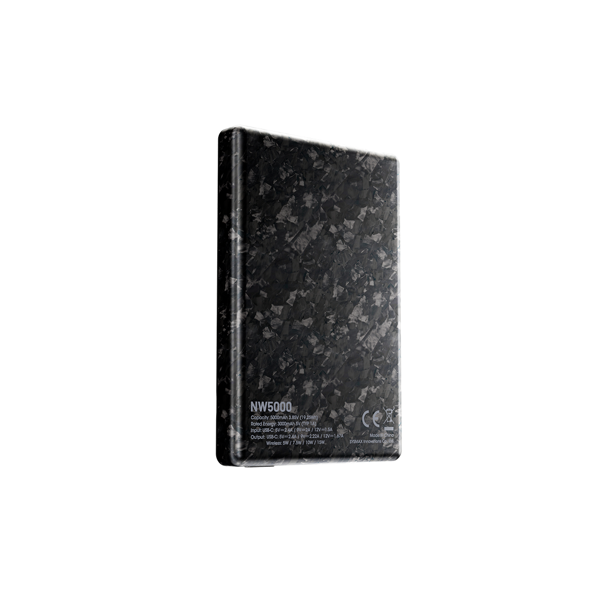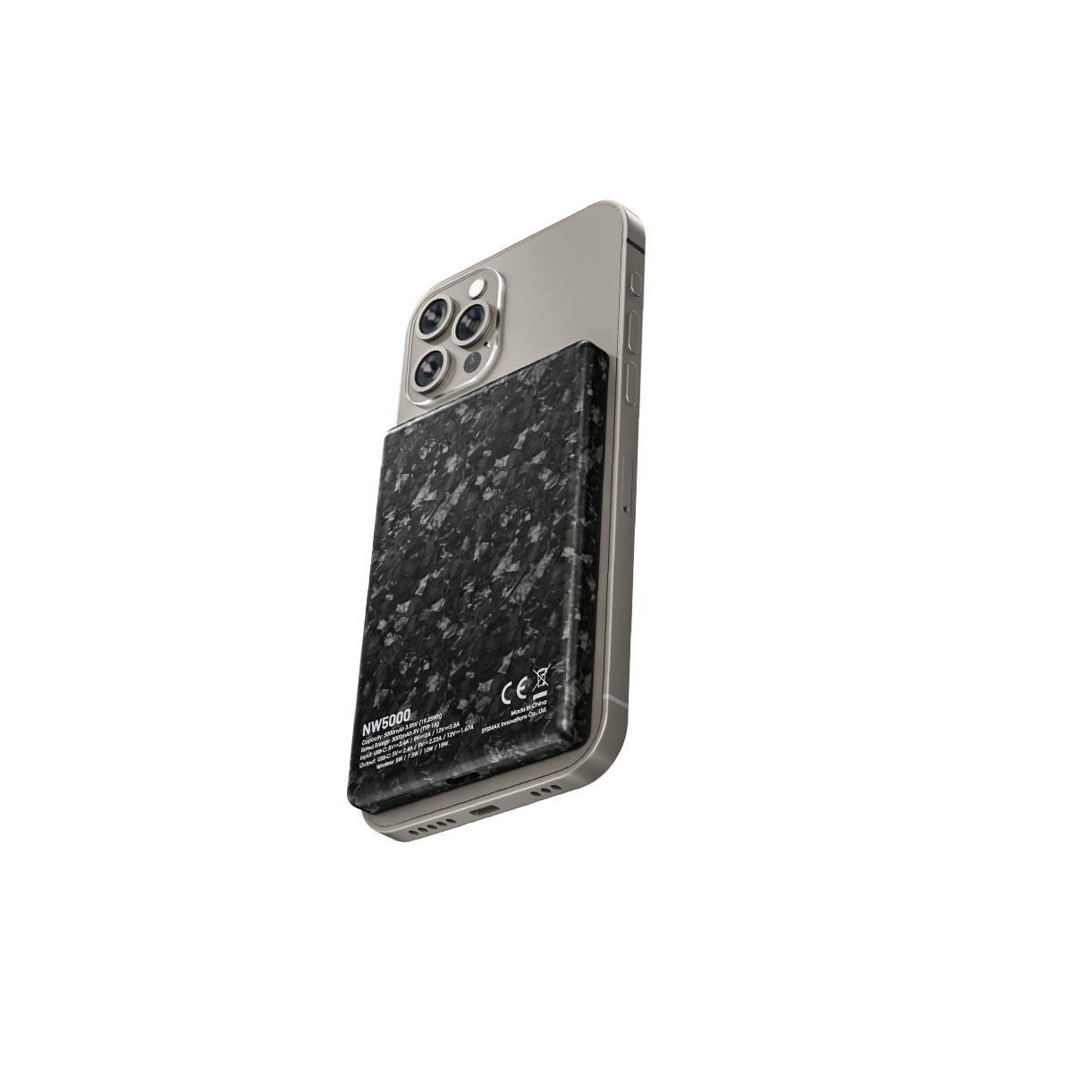 Этот магнитный беспроводной пауэрбанк из углеродного волокна представляет собой новое измерение эстетического дизайна и функциональности.