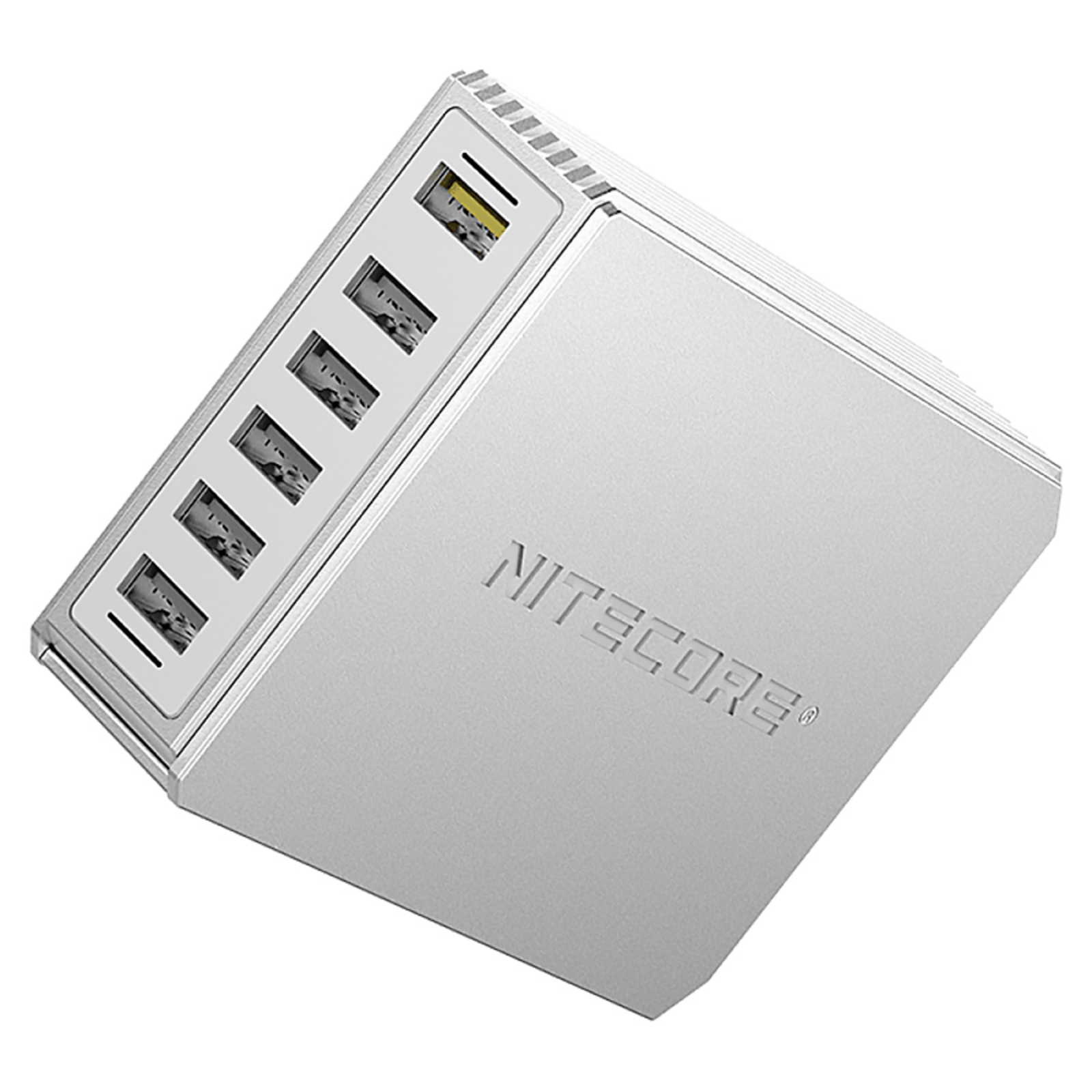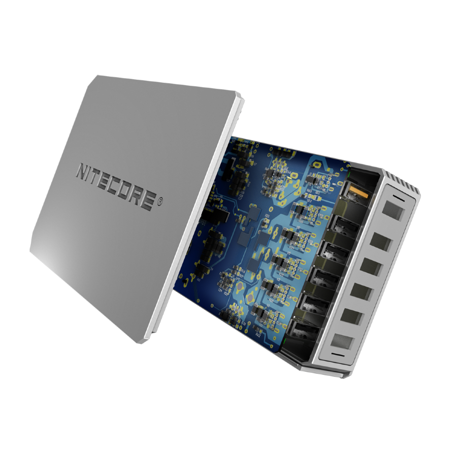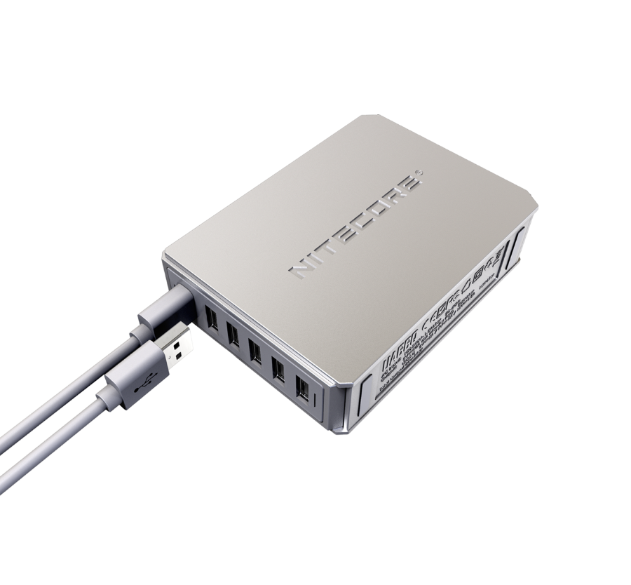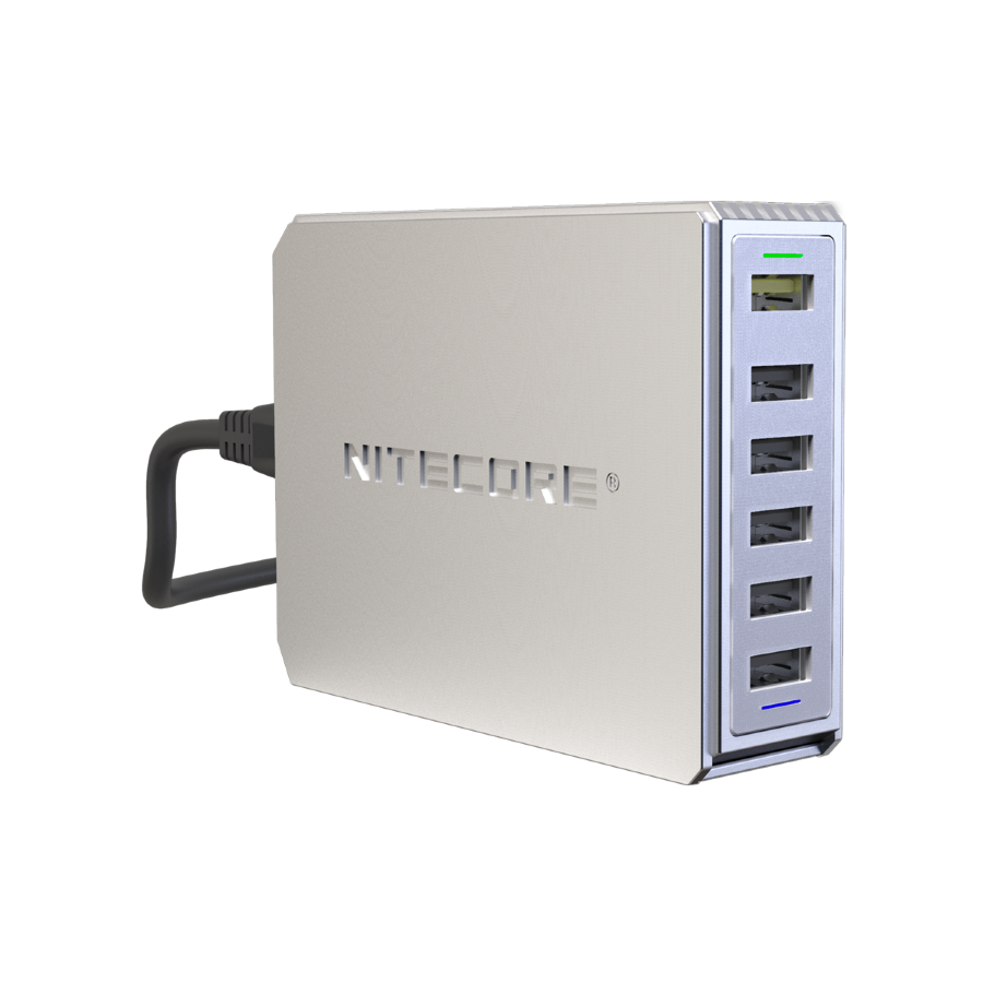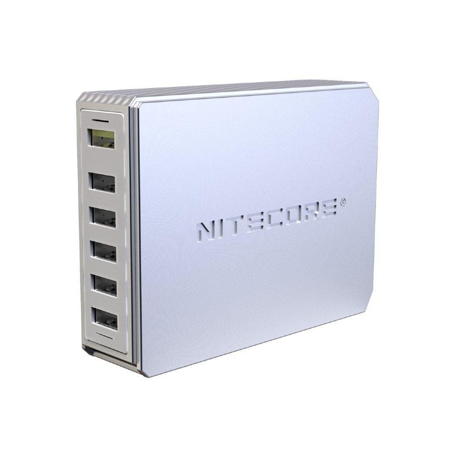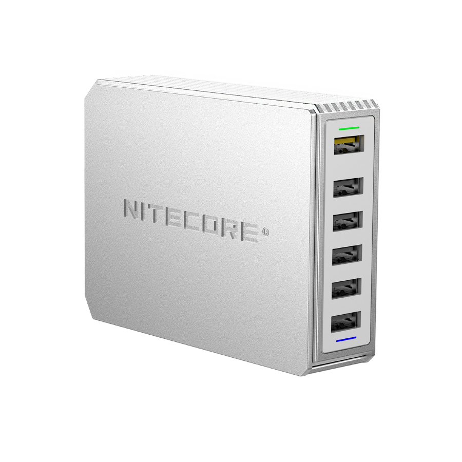 Максимально производительное устройство с поддержкой сразу 6-и каналов одновременной зарядки USB-устройств – Nitecore UA66Q. Данный адаптер сможет без всяких проблем заменить совершенно все зарядки, используемые ежедневно для заряжания портативных гаджетов: смартфонов, мобильных телефонов, планшетов, Powerbank и др. Все вышеперечисленные гаджеты можно заряжать одновременно, так как Nitecore UA66Q в автоматическом режиме проверяет каждое подключенное устройство и устанавливает для него оптимальный режим для зарядки. Благодаря небольшому размеру зарядное устройство UA66Q можно поставить на стол или любое другое удобное место.