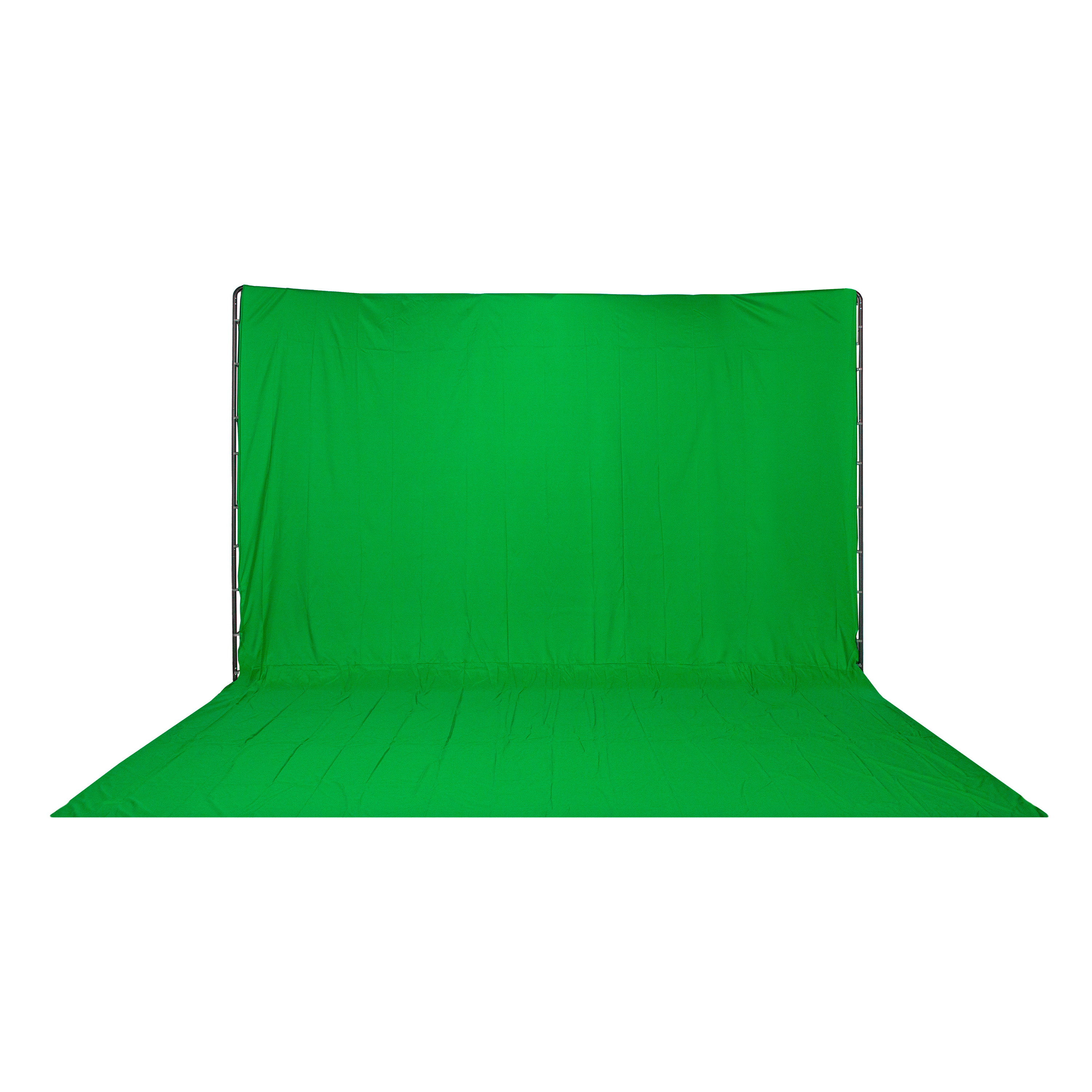Тканевый фон крепится к каркасу с помощью клипс. Тканевое полотно общей длиной 4,8 м имеет шлейф 2,4 м для полноценной съемки человека в полный рост с последующей заменой фона на полу.