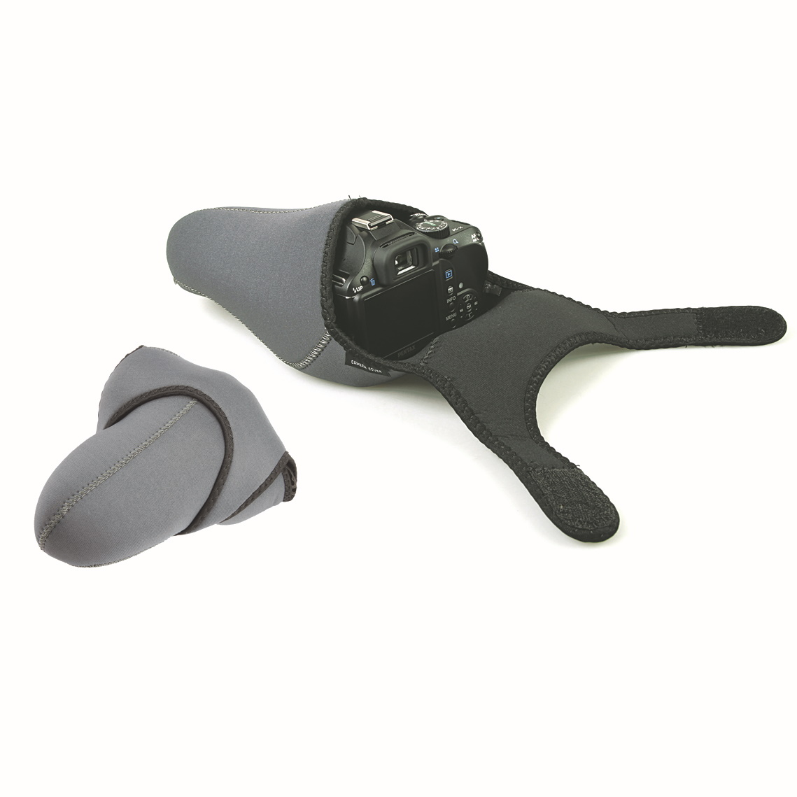 Этот футляр плотно одевается на камеру с объективом, поглощает удары, предупреждает появление царапин. Изготовлен из неопрена — водонепроницаемый, эластичный, мягкий и прочный материал. Цельная конструкция проста в использовании и универсальна, подходит для широкого модельного ряда фотокамер.