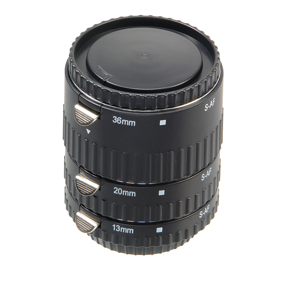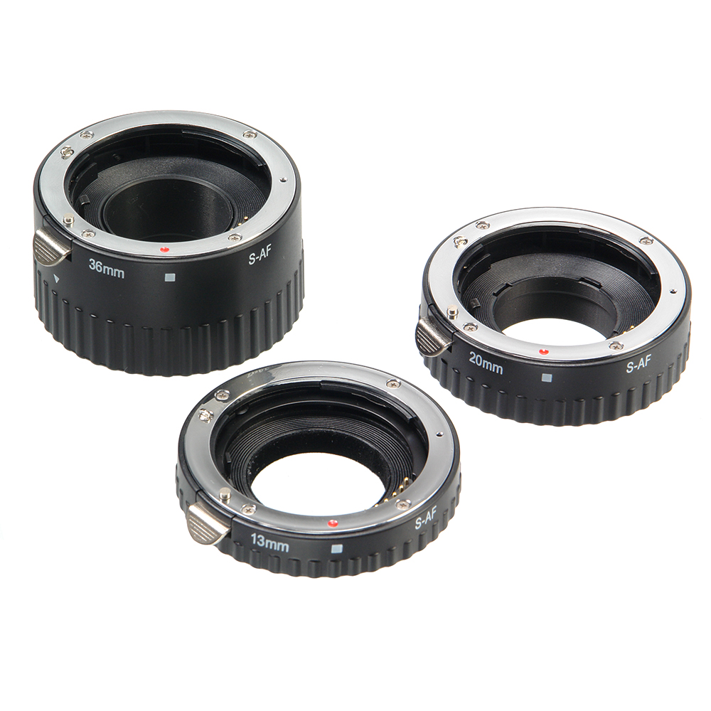 Набор удлинительных колец с поддержкой автофокуса, используются для макросъемки. За счет увеличения рабочего отрезка позволяют фокусироваться с более близкого расстояния и снимать объекты в увеличенном масштабе.