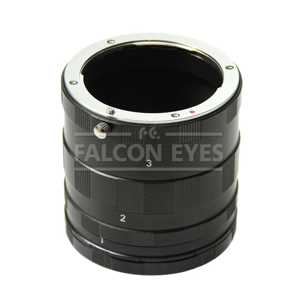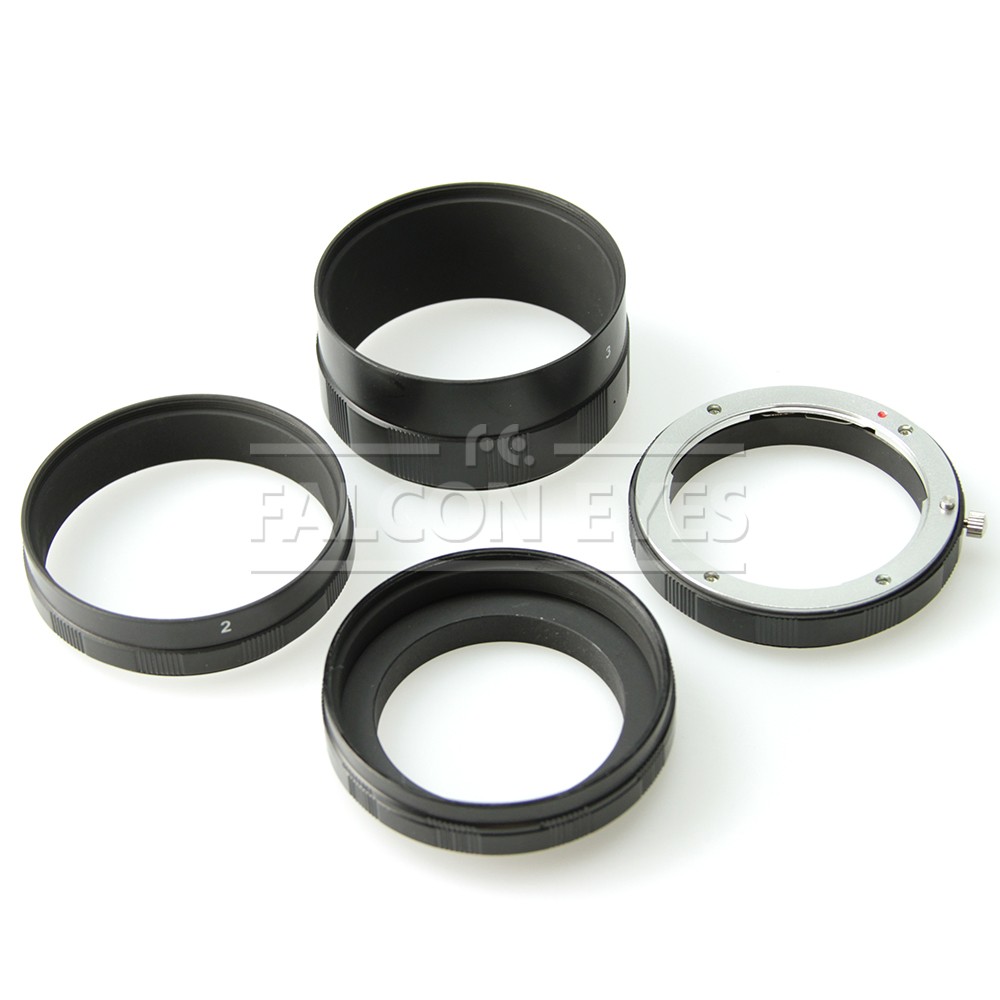 Комплект макроколец включает в себя три удлинительных кольца 7 мм, 14 мм и 28 мм. Удлинительные кольца можно устанавливать по отдельности или комбинировать в любом порядке. С изменением комбинаций колец, могут быть получены различные масштабы объекта съемки.