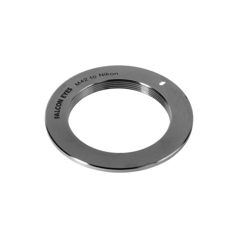 Переходное кольцо M42 на Nikon позволяет устанавливать объективы с резьбой М42 (рабочий отрезок 45,5 мм) на фотоаппараты с байонетом Nikon F (рабочий отрезок 46,5 мм). Фокусировка на бесконечность не поддерживается из-за разницы рабочих отрезков (рабочий отрезок камеры Nikon больше чем рабочий отрезок объективов с резьбовым креплением М42), используется для макросъемки или, с некоторыми объективами, для портретной съемки. Данная модель не имеет электронных контактов, в связи с чем отсутствует подтверждение фокусировки. Работает с режимами М или Av, камера выберет выдержку под установленную вручную на объективе диафрагму. Фокусировка и управление диафрагмой производятся в ручном режиме.