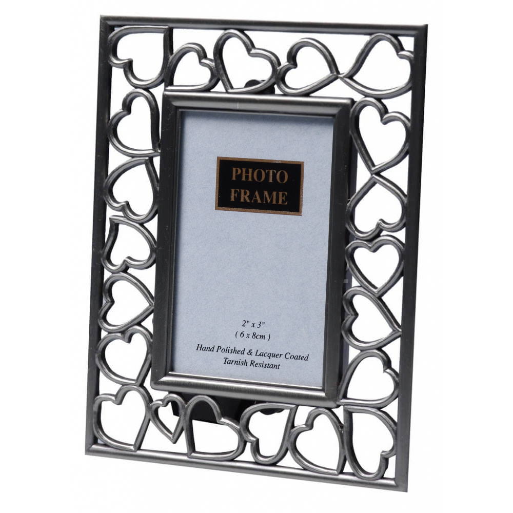 Металлическая рамка для фото размером 6х8 см. Цвет: темно-серебристый, оформление: сердце