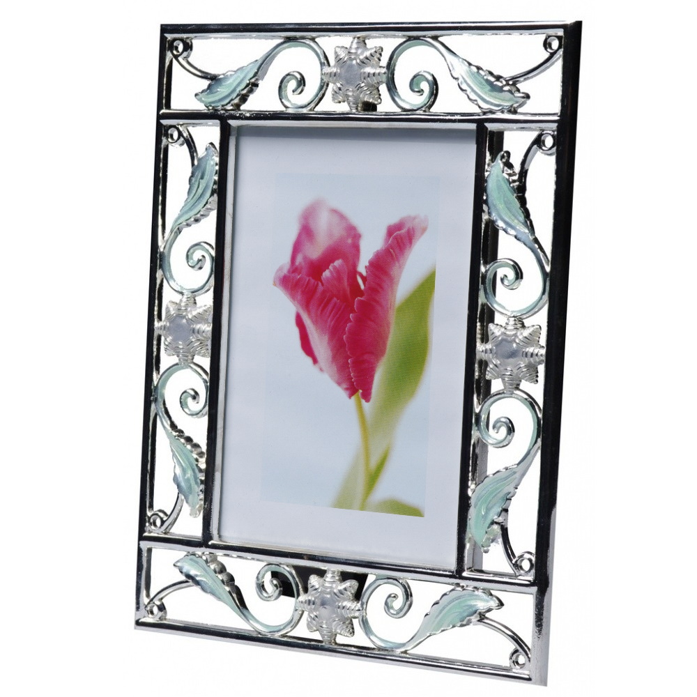 Металлическая рамка с цветной эмалью для фото размером 9х13 см. Цвет серебристый, бирюзовый
