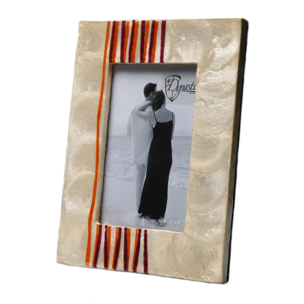 Перламутровая настольная рамка для фотографий размером 10х15 см. бежевый-оранжевый