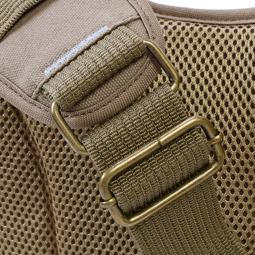 Широкая лямка регулируется по длине и хорошо распределяет нагрузку на плечи. Специальная 3D сетка обеспечивает пространство между спиной и сумкой, что гарантирует свободную циркуляцию воздуха и эффективную вентиляцию. Сумка изготовлена из прочного износоустойчивого брезента, жесткие вспененные стенки защитят оборудование от внешнего механического воздействия.