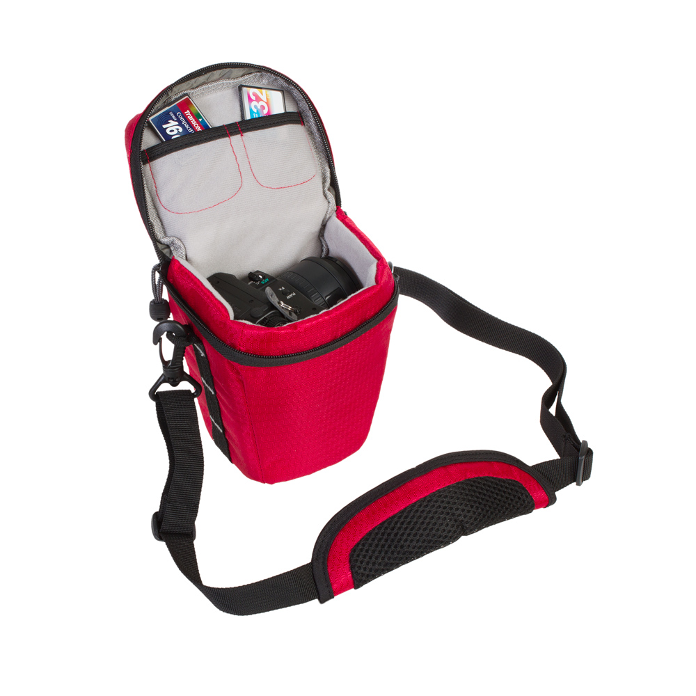 Основное отделение с откидной крышкой на молнии обеспечивает легкий доступ к содержимому и предотвращает от попадания воды, песка и пыли. Внутри находится карман с отсеками для карт памяти. В переднем многофункциональном кармане можно разместить дополнительные аксессуары.