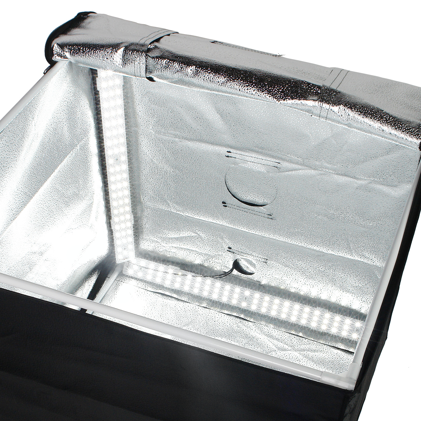 Светодиодное освещение с постоянной температурой 5500 (±200) К и индексом цветопередачи CRI >95 совместно с серебристыми отражающими поверхностями тента и дополнительным тканевым рассеивателем, создают интенсивную равномерную подсветку предмета и дают возможность проводить съемку, не меняя каждый раз настройки фотоаппарата.