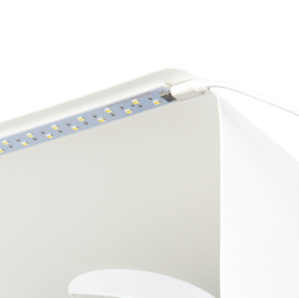 Фотобокс Macro Cube 40 LED из белого матового полипропилена является портативной мини-студией и представляет собой складную конструкцию размером 40x40x40 см с 2 осветительными лентами по 35 светодиодов.
