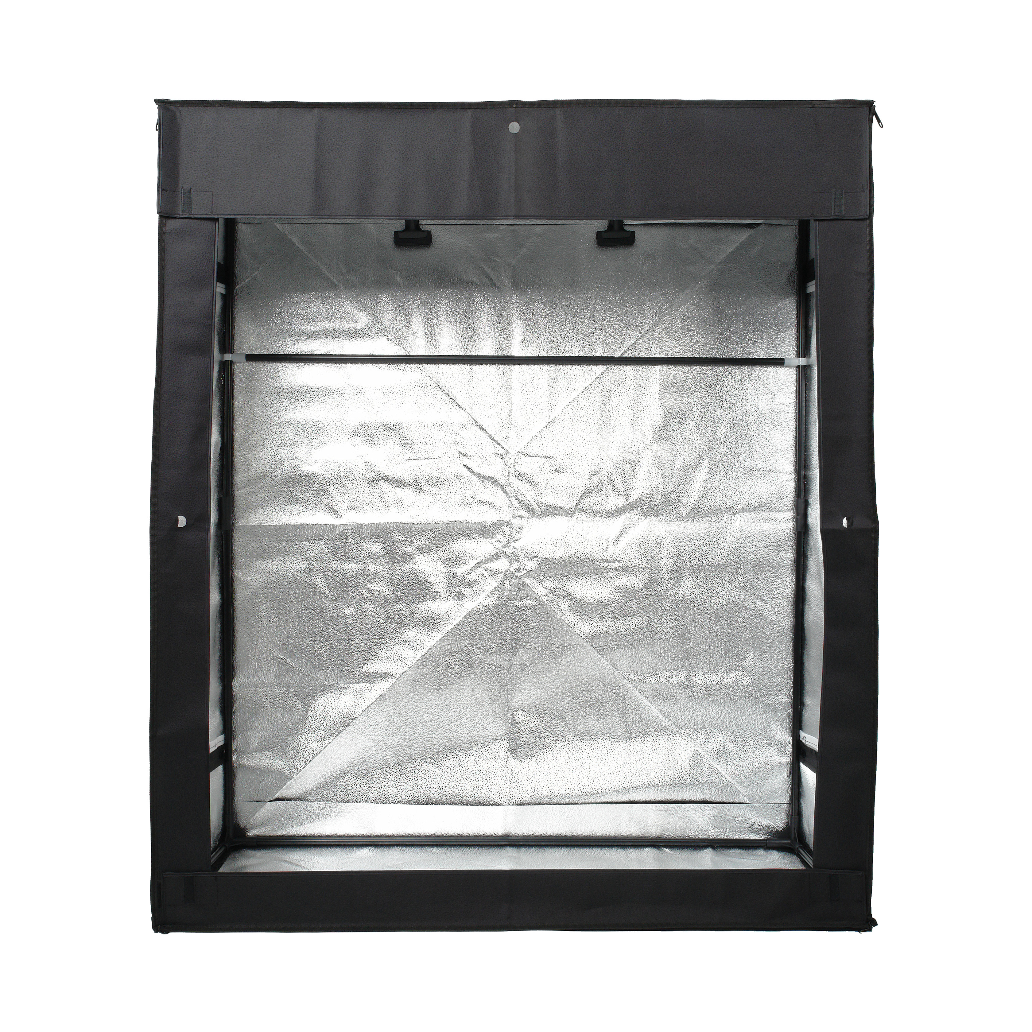 Фотобокс состоит из трубчатого каркаса и тента со светоотражающим слоем. Каркас собирается из стальных трубок и пластиковых соединителей. Тент имеет клапаны на молнии с обеих сторон, с помощью которых можно использовать дополнительные источники света (если хочется внести "художественный" акцент на изображение). На лицевой стороне тента имеется крепление (липучка) для светорассеивателя.