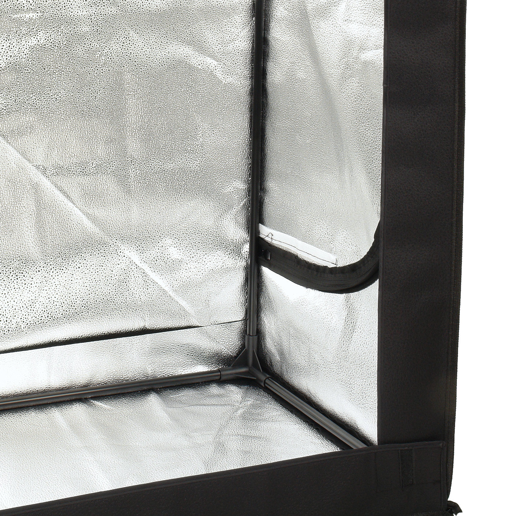 Фотобокс состоит из трубчатого каркаса и тента со светоотражающим слоем. Каркас собирается из стальных трубок и пластиковых соединителей. Тент имеет клапаны на молнии с обеих сторон, с помощью которых можно использовать дополнительные источники света (если хочется внести "художественный" акцент на изображение). На лицевой стороне тента имеется крепление (липучка) для светорассеивателя.