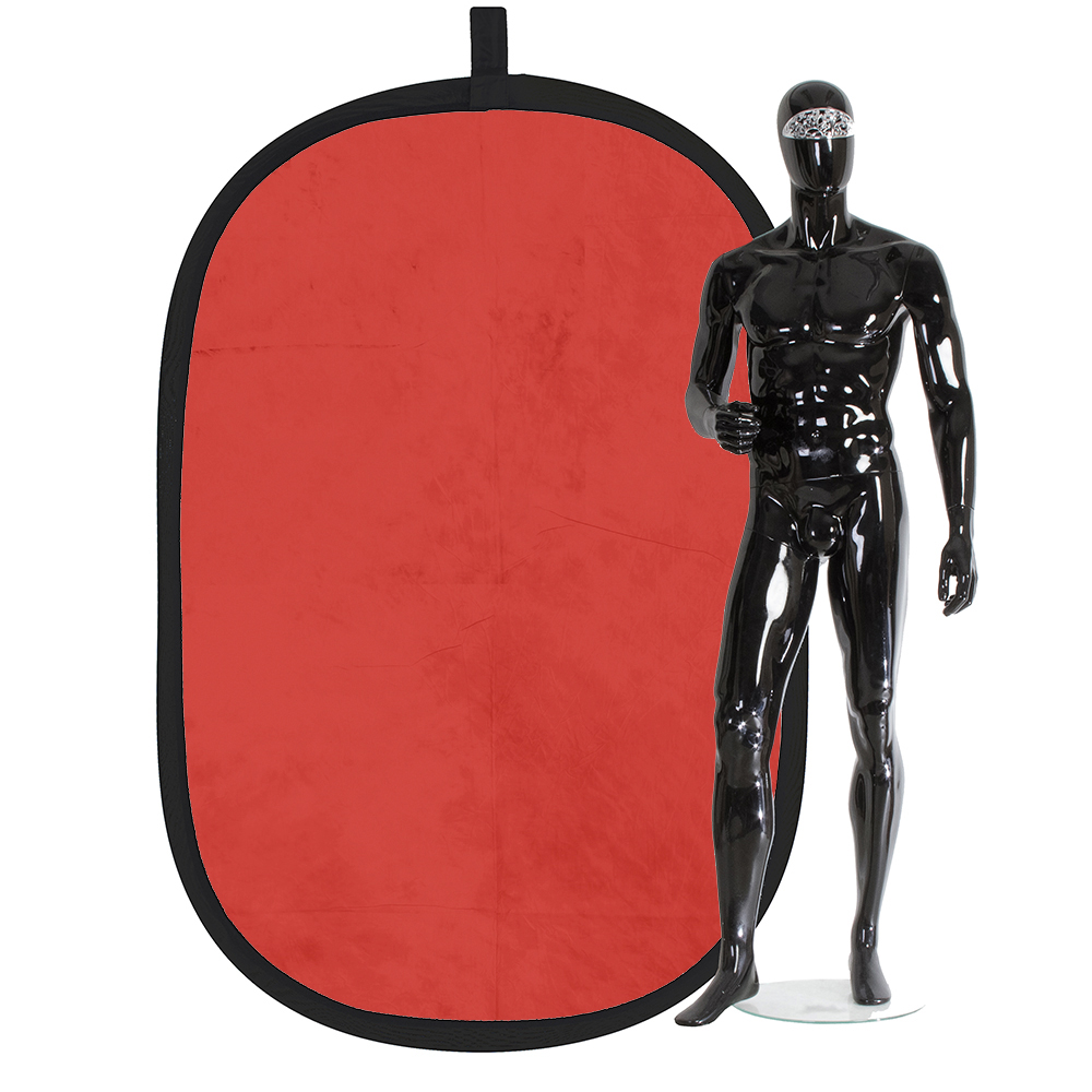 Фон имеет гибкий стальной ободок для растяжки. К фону прилагается специальный чехол, куда его складывают в свернутом состоянии.