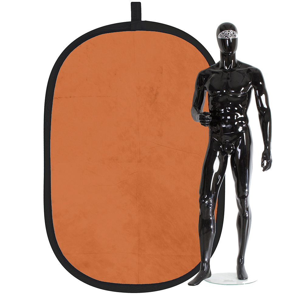 Фон имеет гибкий стальной ободок для растяжки. К фону прилагается специальный чехол, куда его складывают в свернутом состоянии.