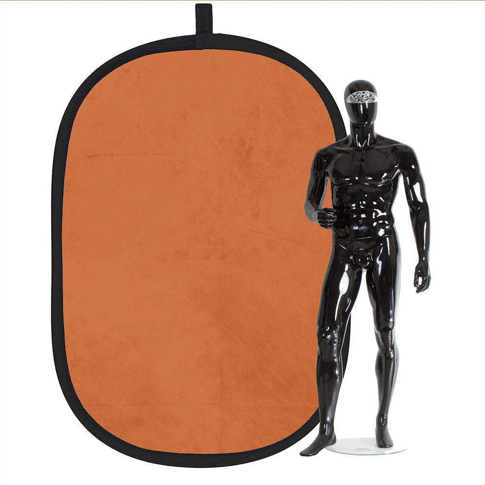 Фон имеет гибкий стальной ободок для растяжки. К фону прилагается специальный чехол, куда его складывают в свернутом состоянии.