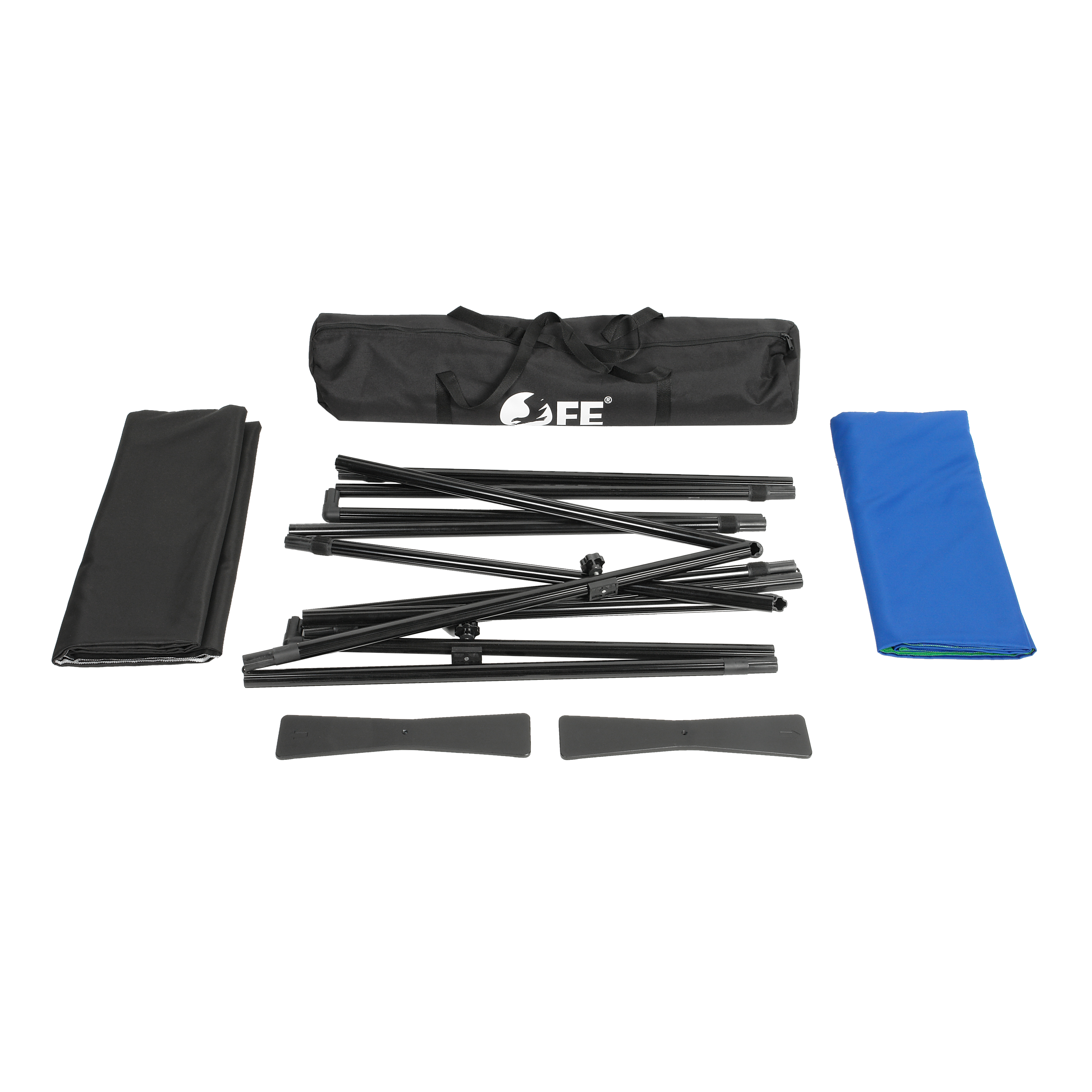 В комплект входит два двухсторонних тканевых полотна, которые позволяют снимать и подвергать обработке изображения с различной цветовой гаммой. Двусторонний фон переворачивается в зависимости от того, какой цвет необходим – синий или зеленый, черный или белый.