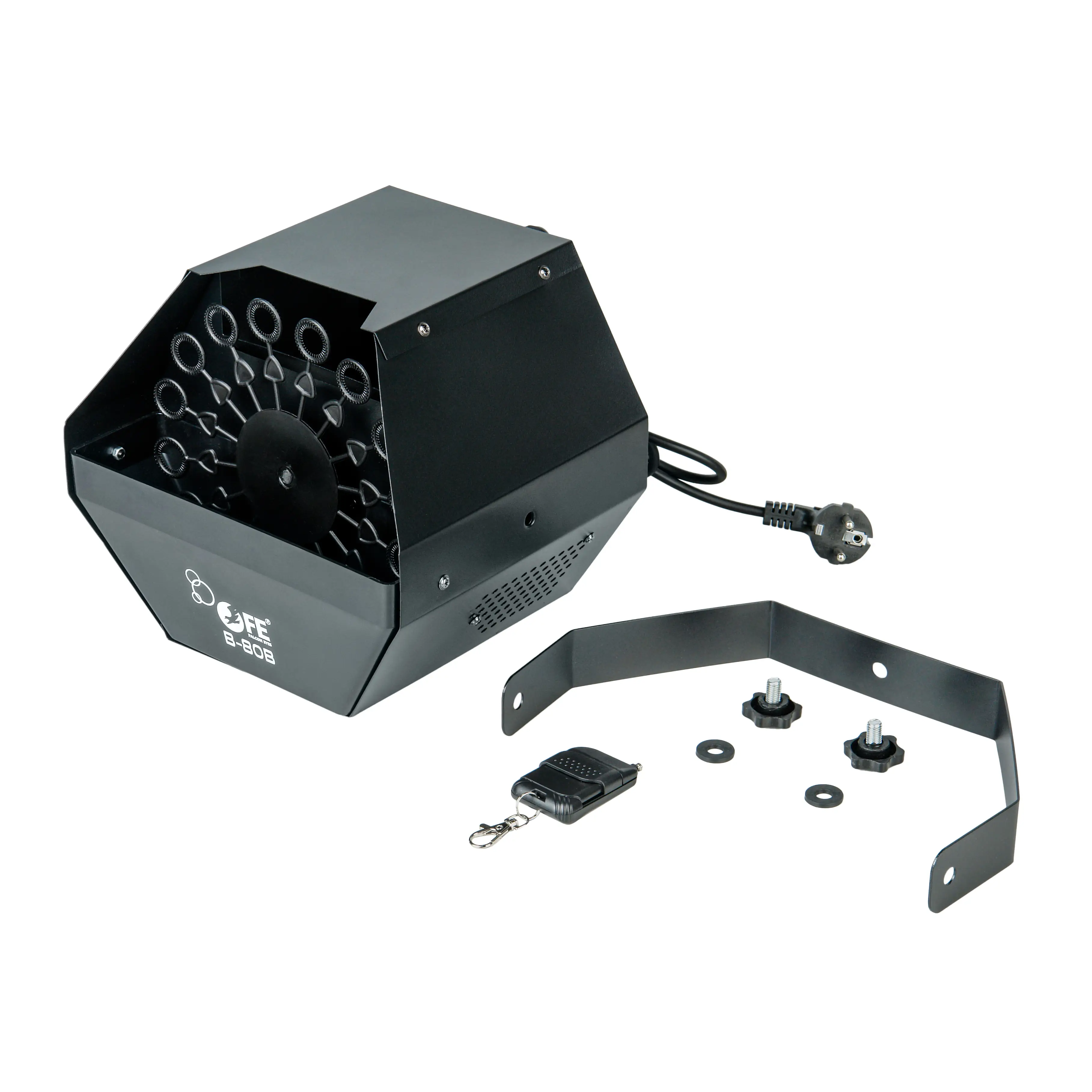 Falcon Eyes B-80B — это профессиональное устройство для создания множества мыльных пузырей. Генератор пузырей предназначен для использования в фотостудиях, театрах, клубах, на детских праздниках и других мероприятиях.