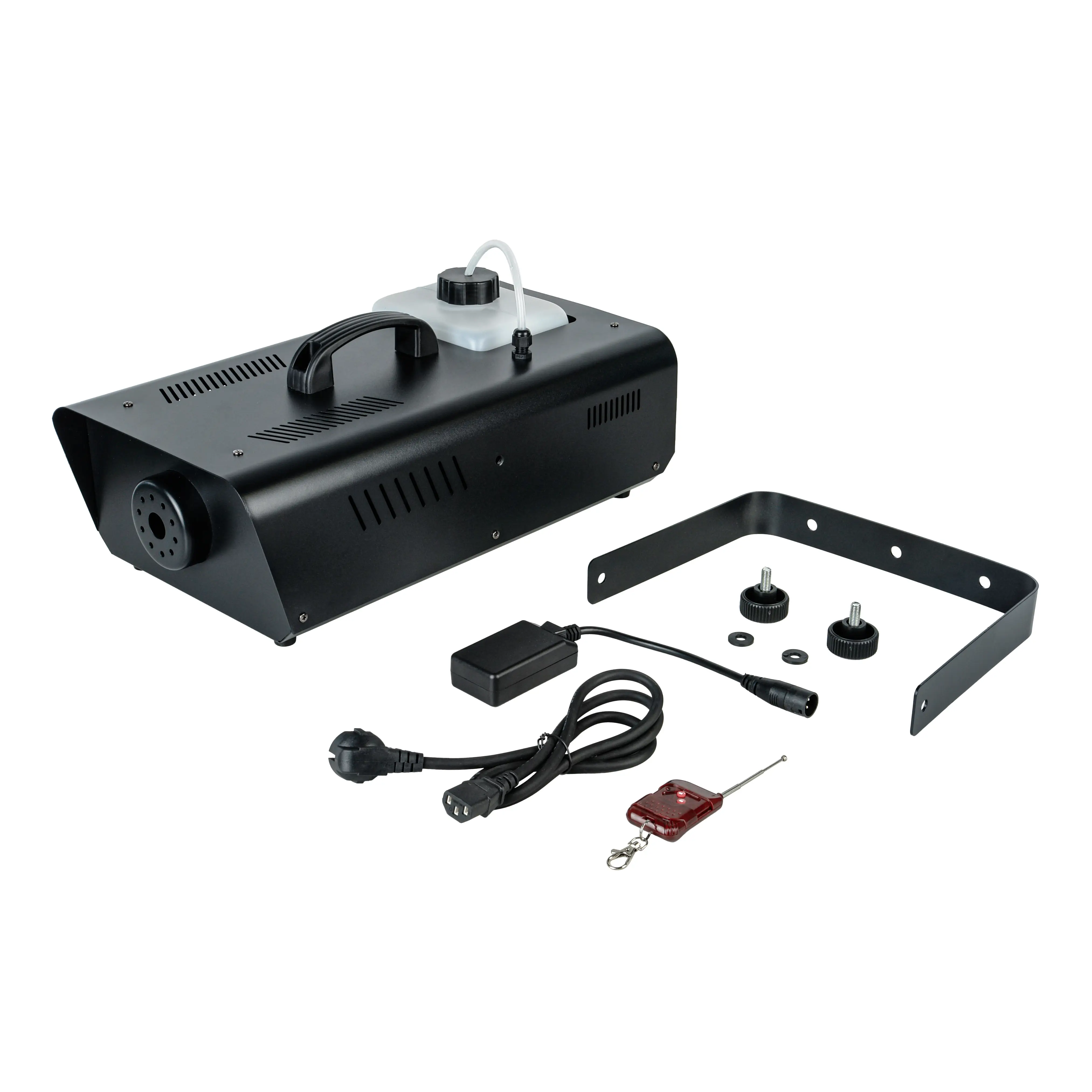 Управление генератором осуществляются с помощью инфракрасного пульта дистанционного управления с дальностью действия до 20 м. Время непрерывной подачи тумана составляет 8–12 секунд с обязательным перерывом на 30 секунд.