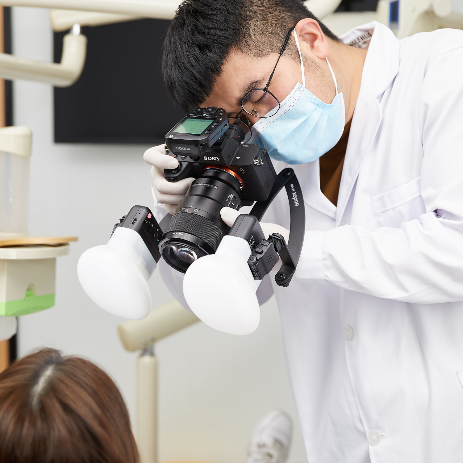 Комплект импульсных осветителей Godox MF12-DK1 создан, чтобы обеспечить равномерное освещение для фотофиксации результата стоматологического лечения.