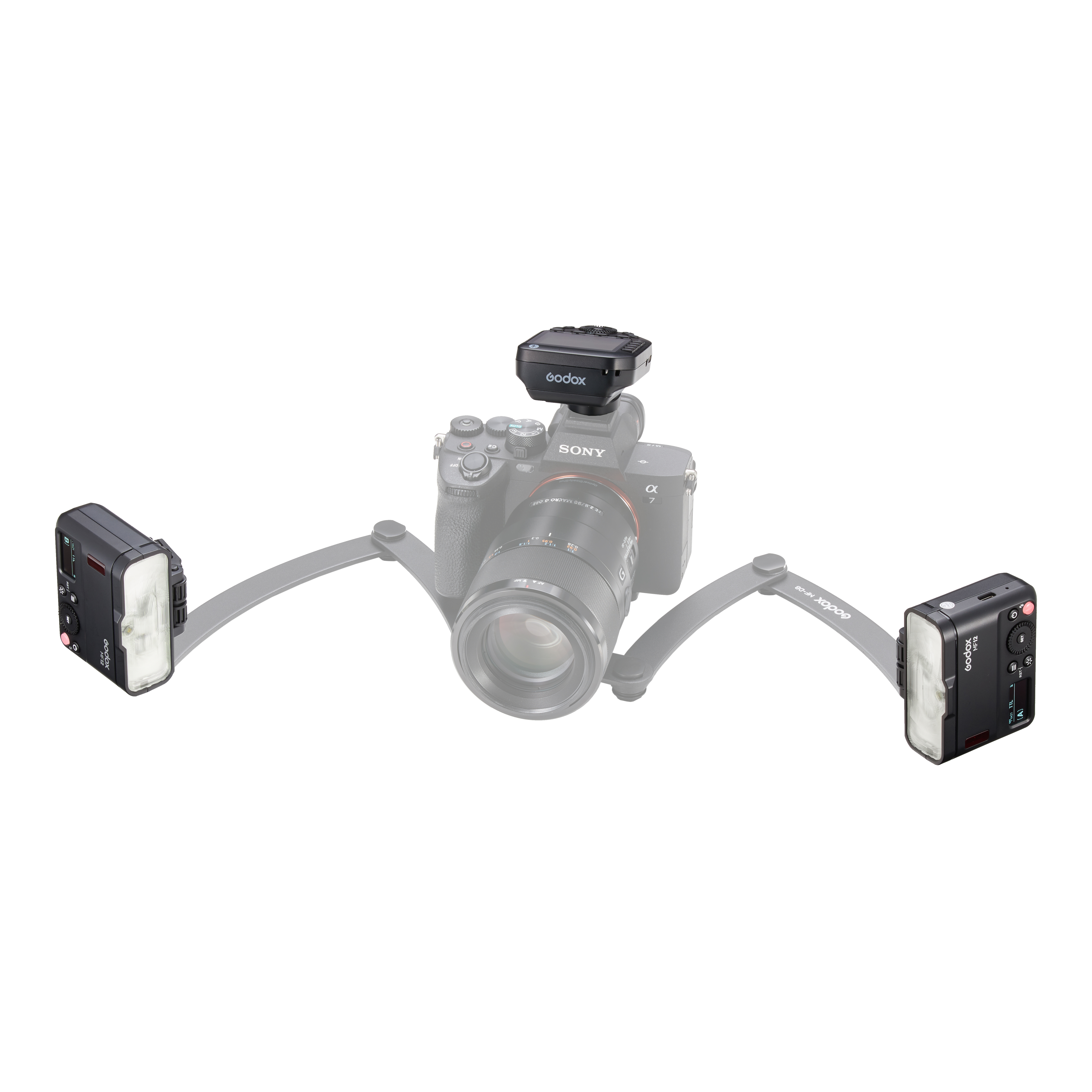 - Комплект из двух вспышек MF12 и радиосинхронизатора Godox XproII S+ для Sony